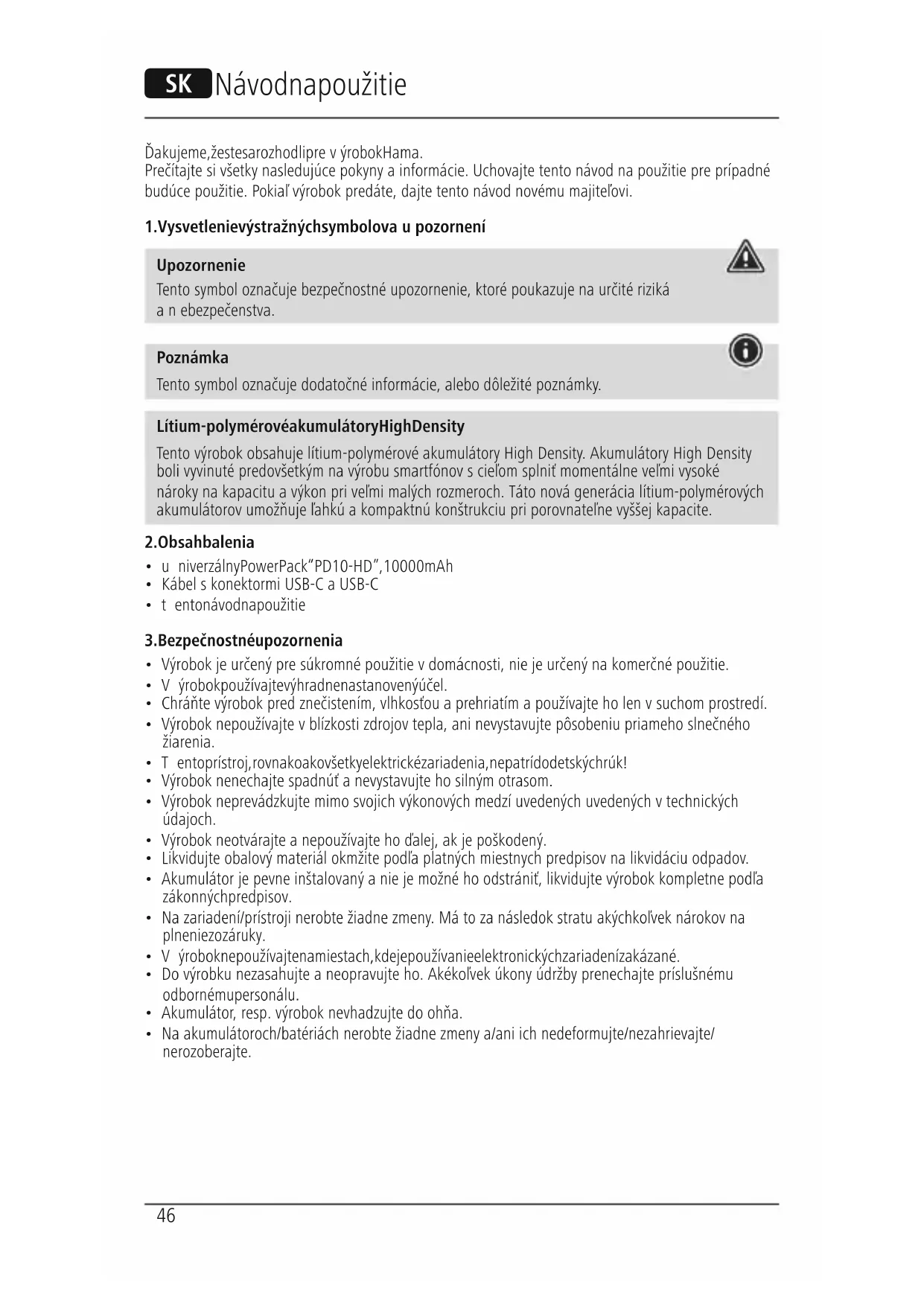 Upozornenie Tento symbol označuje bezpečnostné upozornenie, ktoré poukazuje na určité riziká anebezpečenstva. Poznámka Tento symbol označuje dodatočné informácie, alebo dôležité poznámky. Lítium-polymérové akumulátory High Density Tento výrobok obsahuje lítium-polymérové akumulátory High Density.Akumulátory High Density boli vyvinuté predovšetkým na výrobu smartfónov scieľom splniť momentálne veľmi vysoké nároky na kapacitu avýkon pri veľmi malých rozmeroch. Táto nová generácia lítium-polymérových akumulátorov umožňuje ľahkú akompaktnú konštrukciu pri porovnateľne vyššej kapacite.