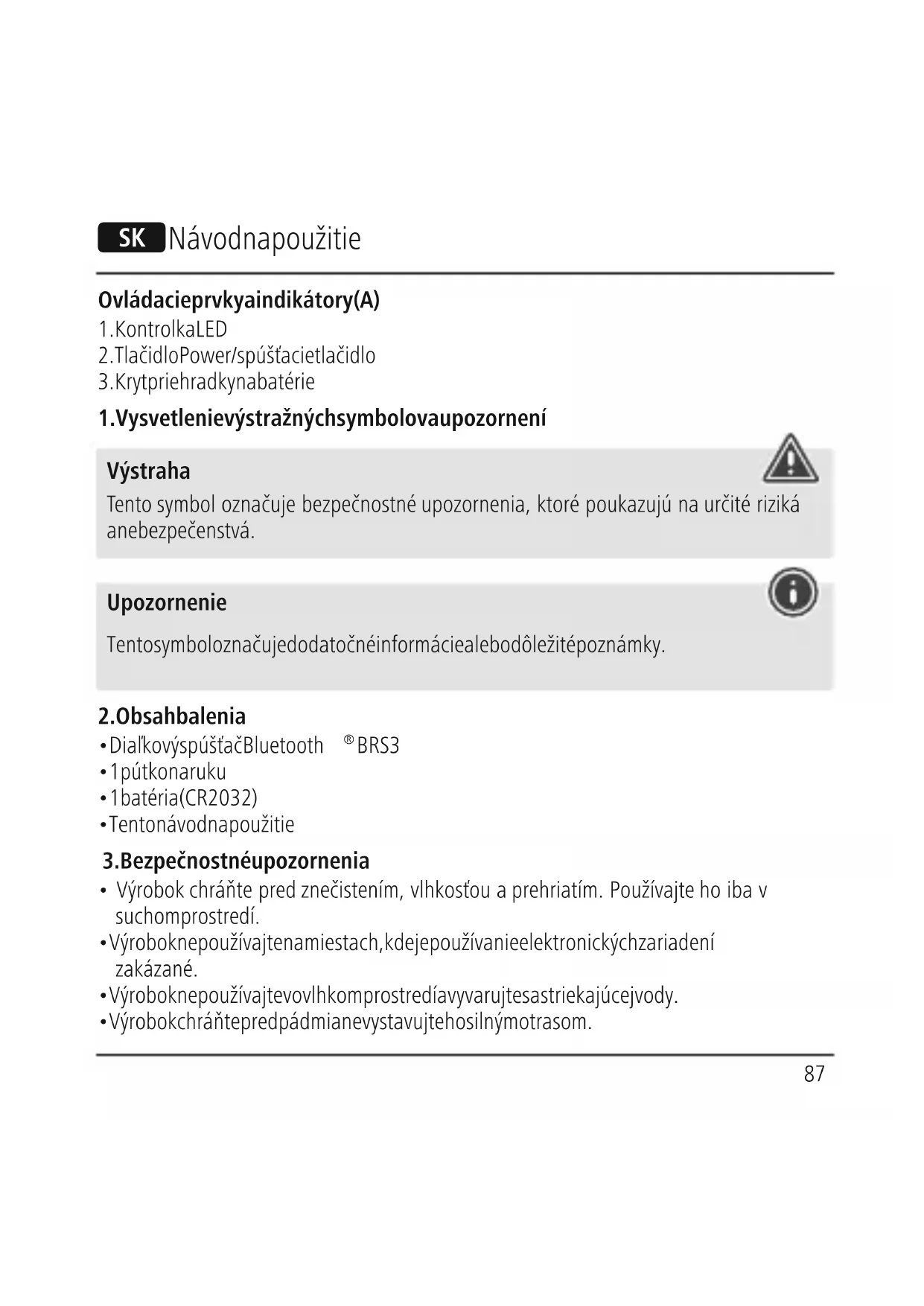 - Batérie nikdy neotvárajte, zabráňte ich poškodeniu, prehltnutiu alebo uniknutiu do životného prostredia. Môžu obsahovať jedovaté ťažké kovy, škodlivé pre životné prostredie.