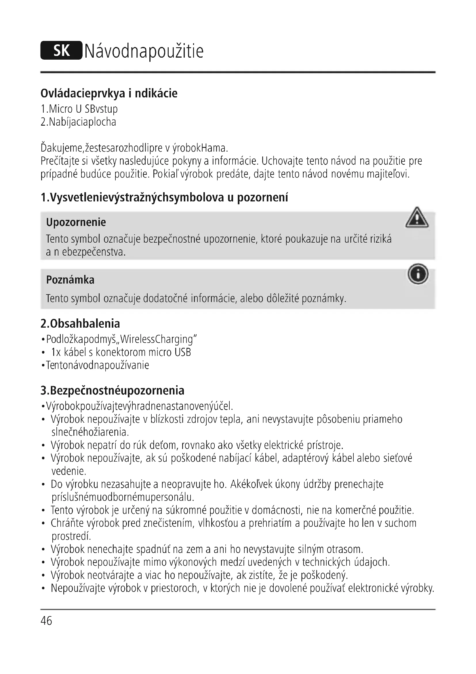 Ďakujeme, že ste sa rozhodli prevýrobok Hama. Prečítajte si všetky nasledujúce pokyny ainformácie. Uchovajte tento návod na použitie pre prípadné budúce použitie. Pokiaľ výrobok predáte, dajte tento návod novému majiteľovi.