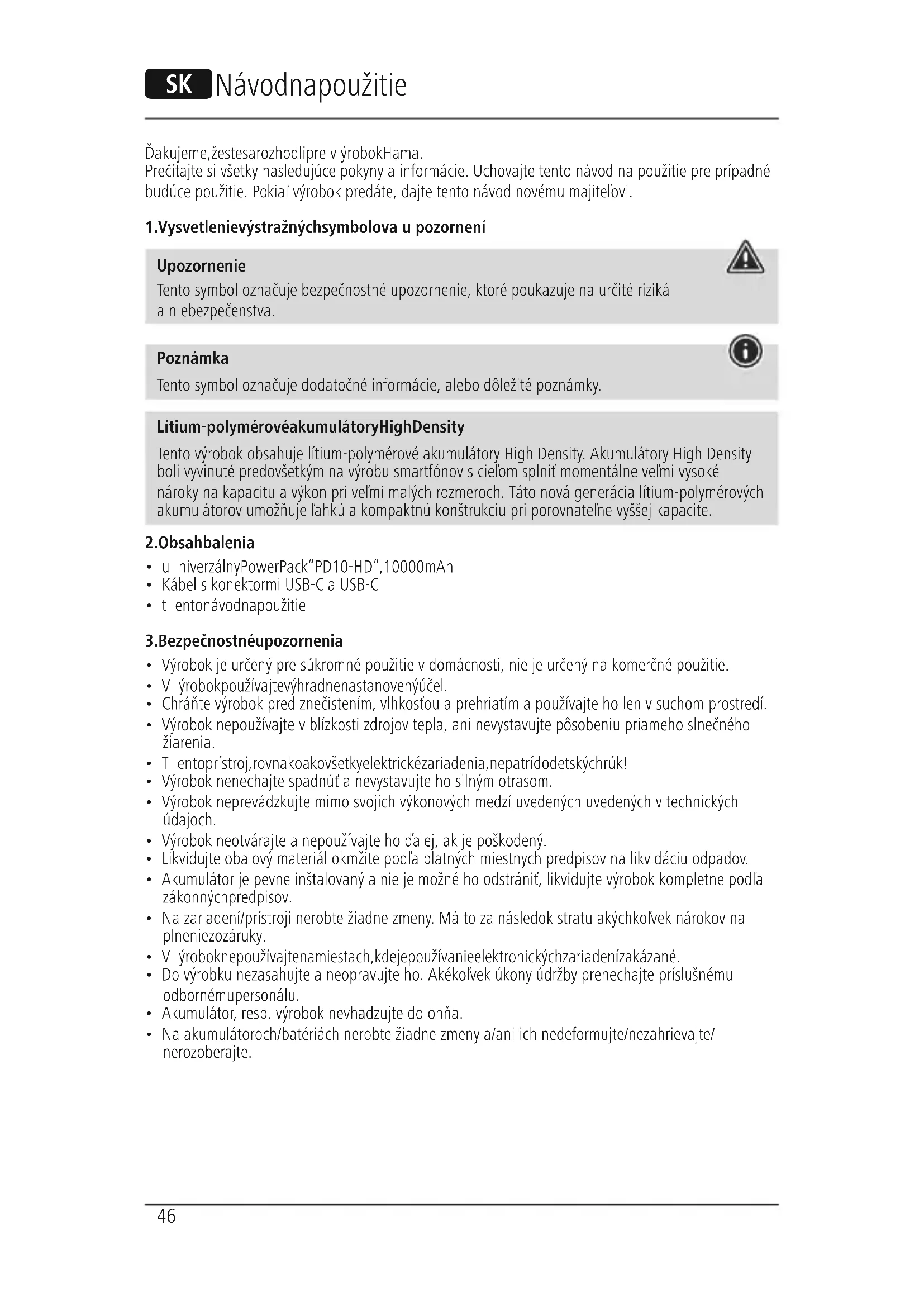 Upozornenie Tento symbol označuje bezpečnostné upozornenie, ktoré poukazuje na určité riziká anebezpečenstva. Poznámka Tento symbol označuje dodatočné informácie, alebo dôležité poznámky. Lítium-polymérové akumulátory High Density Tento výrobok obsahuje lítium-polymérové akumulátory High Density.Akumulátory High Density boli vyvinuté predovšetkým na výrobu smartfónov scieľom splniť momentálne veľmi vysoké nároky na kapacitu avýkon pri veľmi malých rozmeroch. Táto nová generácia lítium-polymérových akumulátorov umožňuje ľahkú akompaktnú konštrukciu pri porovnateľne vyššej kapacite.