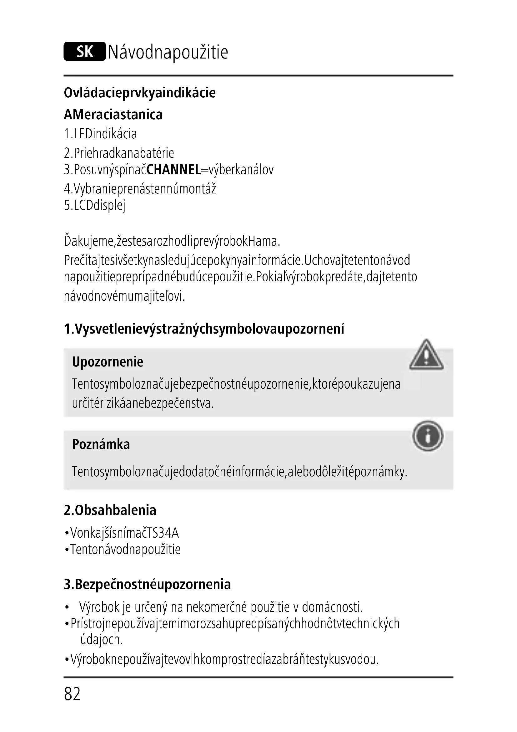 TS34A - Nekategorizované HAMA - Bezplatný návod na obsluhu