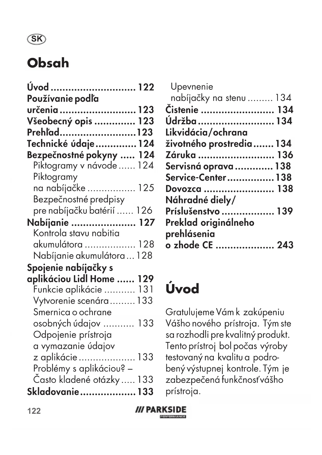 - Náhradné diely/ Príslušenstvo Úvod Gratulujeme Vám k zakúpeniu Vášho nového prístroja. Tým ste sa rozhodli pre kvalitný produkt. Tento prístroj bol počas výroby testovaný na kvalitu a podro- bený výstupnej kontrole. Tým je zabezpečená funkčnosť vášho prístroja.123 p. 139