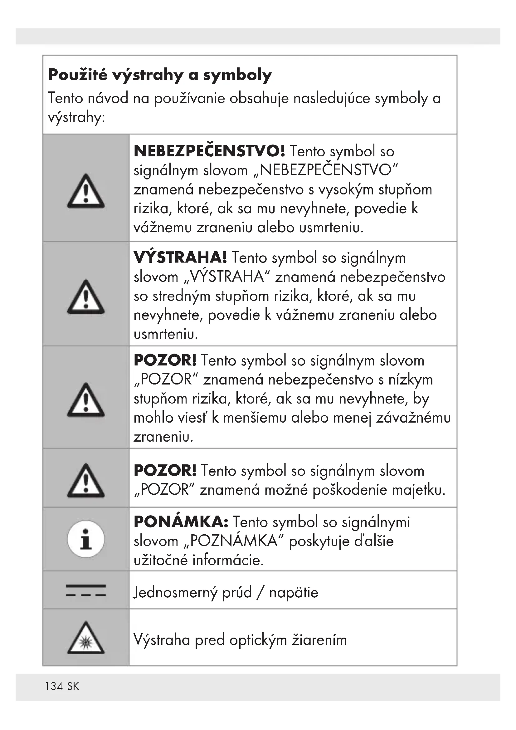 VÝBUCHU! Výstraha s týmto symbolom a slovo „VÝSTRAHA!“ „NEBEZPEČENSTVO VÝBUCHU“ znamená potenciálnu hrozbu výbuchu. Nedodržanie tejto výstrahy môže viesť k vážnym alebo smrteľným zraneniam a potenciálnemu poškodeniu majetku. Dodržiavajte pokyny v tejto výstrahe, aby sa predišlo vážnym zraneniam, ohrozeniu života či poškodeniu majetku! Značka CE uvádza zhodu s príslušnými smernicami EÚ platnými pre tento výrobok.136 SK