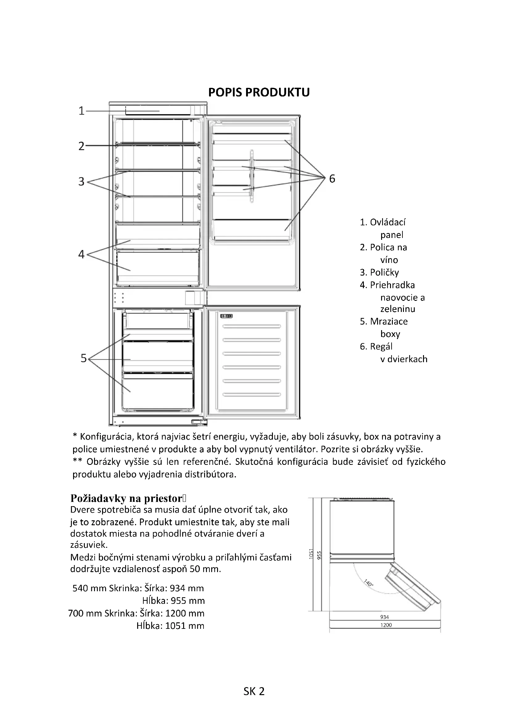 Vnútorná žiarovka sa nezapne. ● Prerušené elektrické napájanie. Nesprávny elektrický kábel. Skontrolujte, či je spotrebič vypnutý (pozri Nastavenie teploty). Skontrolujte, či elektrická zásuvka funguje správne (napr. použitím iného elektrického spotrebiča). ● Je aktivovaný režim Holiday. Deaktivujte režim Holiday. Vnútorná teplota chladničky a/alebo mrazničky nie je dostatočne nízka. ● Dvere nie sú zatvorené. Skontrolujte, či sú dvere zatvorené a ich tesnenia. ● Často otvárate dvere. Určitú dobu sa vyhnite zbytočnému otváraniu dverí. ● Nesprávne nastavenie teploty. Skontrolujte nastavenie teploty, a ak je to možné, nastavte nižšiu teplotu (pozri Úprava teploty). ● Chladnička a/alebo mraznička sú príliš plné. Počkajte, kým sa teplota chladničky/mrazničky nestabilizuje. Vyhnite sa nadmernému plneniu chladničky a mrazničky. ● Teplota okolia je príliš nízka. Presuňte jednotku na teplejšie miesto alebo aktuálnu miestnosť vykúrte. ● Do spotrebiča ste vložili teplé predmety. Pred vložením položiek ich vždy nechajte vychladnúť. Jedlo v chladničke zamrzne. ● Nesprávne nastavenie teploty. Skontrolujte nastavenie teploty, a ak je to možné, zvýšte teplotu. ● Potraviny sú v kontakte so zadnou stenou. Potraviny ukladajte tak, aby sa nedotýkali zadnej steny chladničky. Dno chladiaceho priestoru je mokré alebo sú prítomné kvapôčky. ● Vypúšťacia hadica by mohla byť upchatá. Vyčistite vypúšťaciu hadicu tyčinkou alebo podobným predmetom, aby ste umožnili odtok vody. Prítomnosť kvapiek vody alebo námrazy na zadnej stene chladničky. ● V závislosti od funkcie sa počas prevádzky na zadnej stene chladničky vytvárajú kvapky vody alebo námraza. Nie je to chyba. ● Do spotrebiča ste vložili teplé predmety. Pred vložením položiek ich vždy nechajte vychladnúť. ● V spotrebiči sú otvorené nádoby na potraviny alebo kvapaliny. Jedlá a kvapaliny vždy zakryte. ● Dvere nie sú zatvorené. Skontrolujte, či sú dvere zatvorené a ich tesnenia. ● Často otvárate dvere. Určitú dobu sa vyhnite zbytočnému otváraniu dverí. Prítomnosť vody v zásuvke na zeleninu. ● Nedostatočná cirkulácia vzduchu. Skontrolujte, či váš spotrebič nie je príliš plný. ● Príliš vlhká zelenina a ovocie. Ovocie a zeleninu vhodne zabaľte, napr. do kuchynskej fólie, vreciek alebo nádob. Motor je nepretržite zapnutý. ● Dvere nie sú zatvorené. Uistite sa, že dvere sú zatvorené a skontrolujte, či tesnenia správne doliehajú. ● Dvere sa často otvárajú. Určitú dobu sa vyhnite zbytočnému otváraniu dverí. ● Teplota okolia je veľmi vysoká. Skontrolujte, či je teplota okolia v rozsahu stanovenom v špecifikáciách na štítku spotrebiča. Nastavte displej/termostat na vyššiu teplotu. ● Spotrebič bol nejaký čas vypnutý (bez elektrického napájania). Zvyčajne trvá 8 – 12 hodín, kým spotrebič úplne vychladne. Mrazené jedlo sa rozmrazuje. ● Teplota okolia je príliš nízka. Presuňte jednotku na teplejšie miesto alebo aktuálnu miestnosť vykúrte. ● Dvere mrazničky nie sú zatvorené. Skontrolujte, či sú dvere zatvorené a či je tesnenie správne utesnené. Alarm dverí chladničky. ● Alarm dverí chladničky (zvuk pípnutia) sa aktivuje vždy, keď sú dvere otvorené dlhšie ako 3 minúty. Nenechávajte dvere otvorené, keď to nie je potrebné. Pípnutie sa zastaví zatvorením dverí. Spotrebič vydáva zvuky, ako je bublanie, bzučanie, klikanie, vŕzganie. ● Žiadne poruchy. Motor je v chode, napr. chladiaca jednotka, ventilátor. Chladivo prúdi do potrubí. Motor, spínače a elektromagnetické ventily sú zapnuté alebo vypnuté. Nie je potrebný žiadny úkon. ● Spotrebič nie je umiestnený na rovnom povrchu. Nastavte nožičky a vyrovnajte spotrebič do vodorovnej polohy. ● Spotrebič sa dotýka susedného predmetu. Odstráňte predmety v okolí spotrebiča. Spotrebič nechladí, svietia kontrolky teploty a osvetlenia. ● Je aktivovaný režim Demo. Vypnite DEMO režim. V mrazničke je silná vrstva ľadu a námrazy. ● Položky neboli vhodne zabalené. Položky vždy dobre zabaľte. ● Netesne zatvorené dvere/zásuvka spotrebiča. Zatvorte dvere/zásuvku. ● Dvere/zásuvka boli otvorené príliš často alebo príliš dlho. Neotvárajte dvere/zásuvku príliš často. ● Tesnenie dverí/zásuvky je znečistené, opotrebované, prasknuté alebo nevhodné. Vyčistite tesnenie dvierok/zásuvky alebo ho vymeňte za nové. ● Niečo na vnútornej strane bráni správnemu zatvoreniu dverí/zásuvky. Premiestnite police, priehradky na dverách alebo vnútorné zásobníky tak, aby sa dali dvere/zásuvka zatvoriť. Boky spotrebiča sú teplé. ● Je to normálne. SK 10Povzetek OPIS IZDELKA ..................................................................................................... UPORABA .......................................................................................................... Uporaba ................................................................................................. Temperatura po meri ............................................................................. Funkcija Super Cool ................................................................................ Funkcija Super Freeze ............................................................................ Način ECO .............................................................................................. Funkcija Holiday ..................................................................................... Odmrzovanje .......................................................................................... Predstavitveni način .............................................................................. Kode napak .........................................................................................