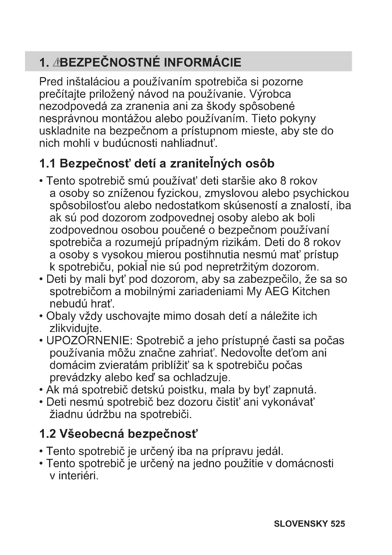 1.2 Všeobecná bezpečnosť