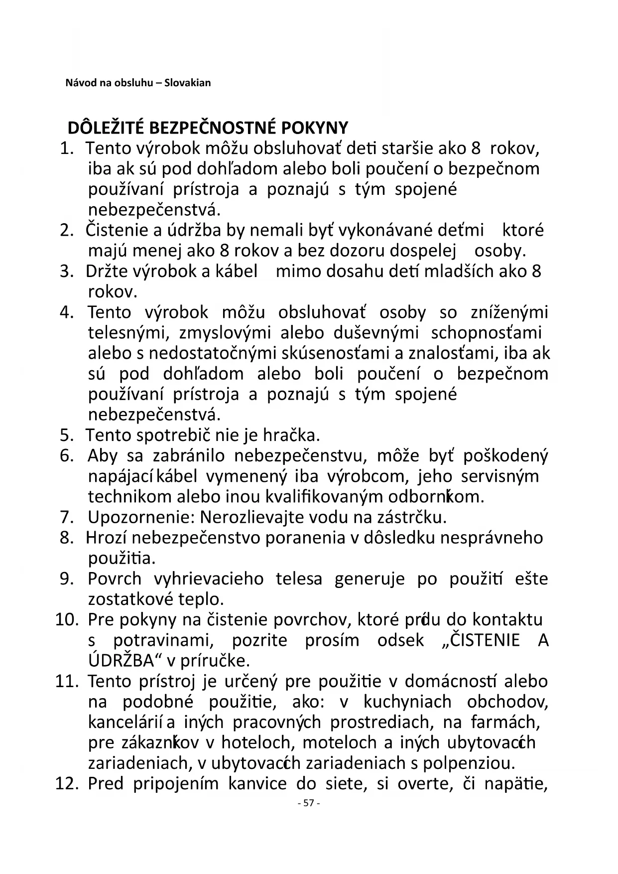 37. Tento spotrebič nie je určeným pre komerčné použitie.
