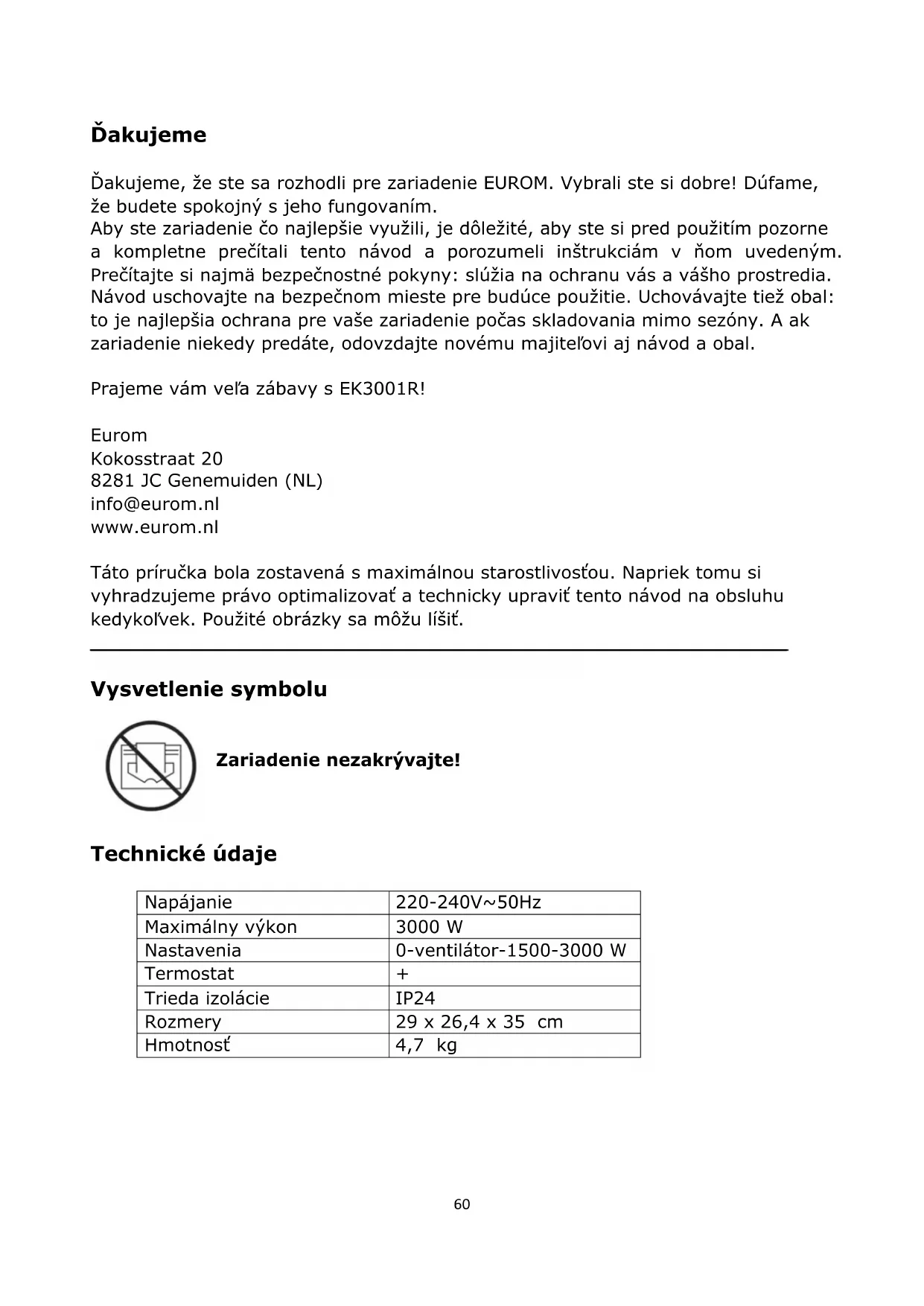 NÁVOD NA OBSLUHU EK3001R Eurom