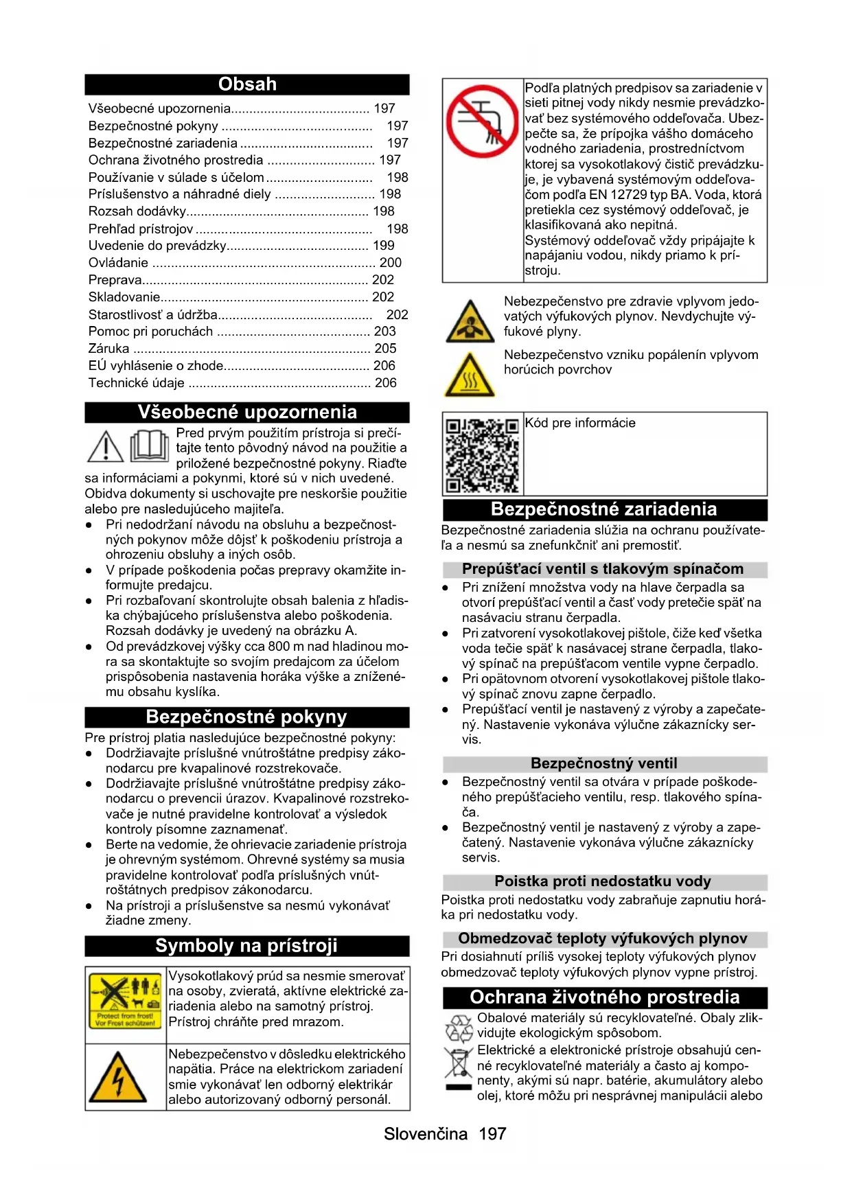 - Bezpečnostné pokyny p. 197