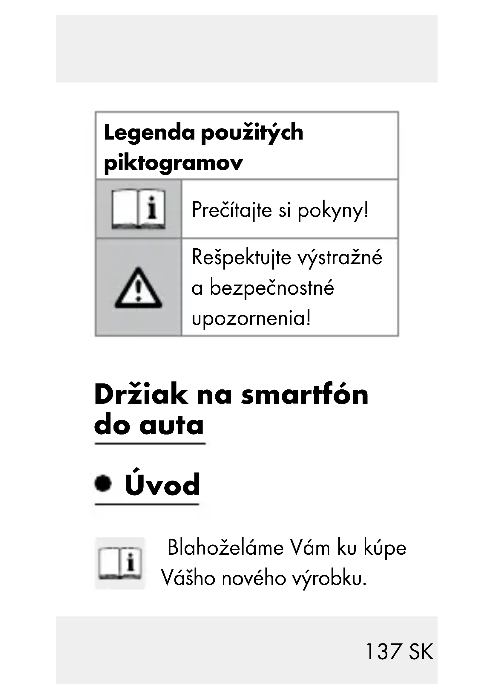 Používanie v súlade s určeným účelom Tento výrobok je určený ako držiak pre smartfóny a mobilné telefóny v automobiloch. Výrobok je určený výlučne na súkromné používanie.