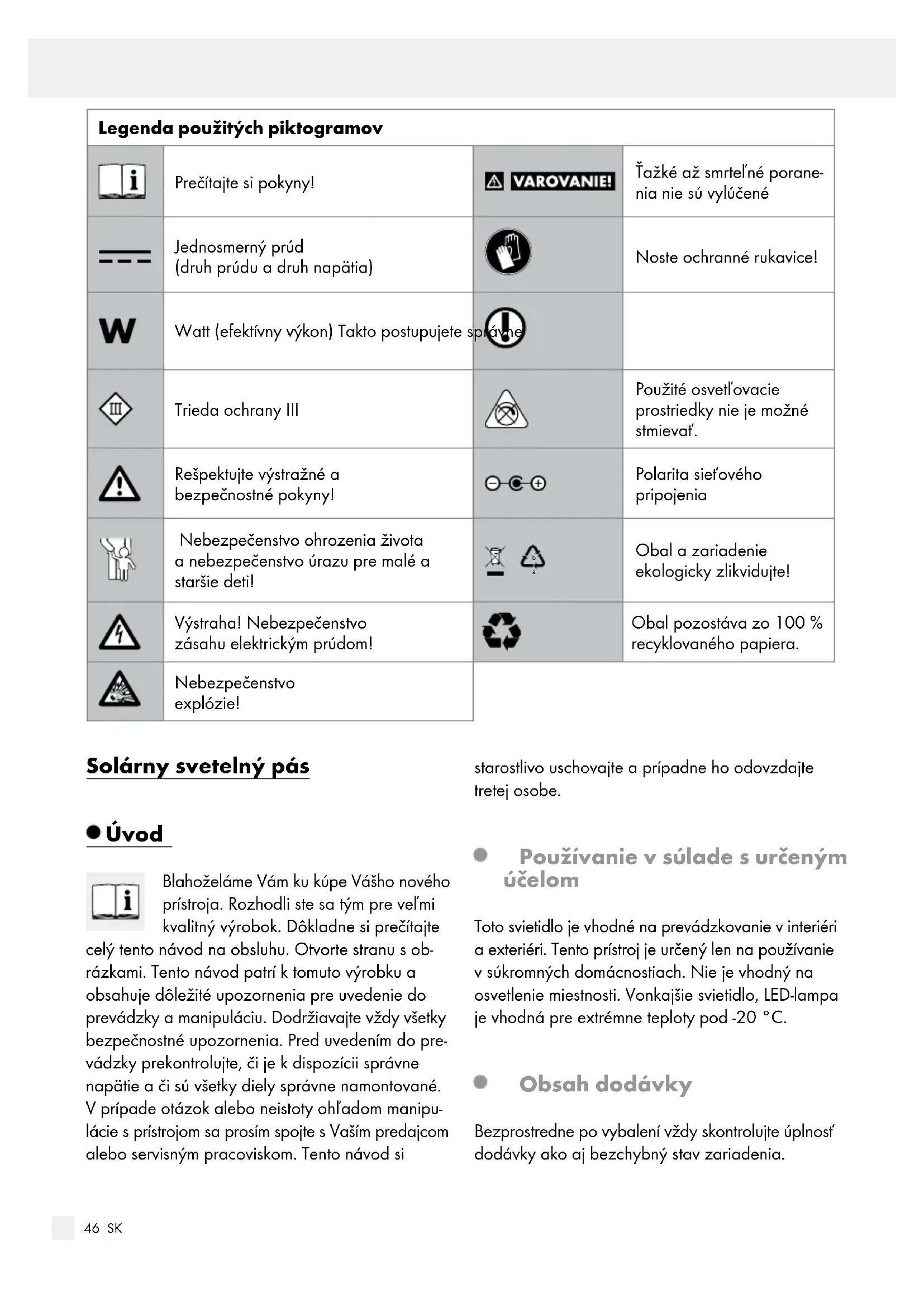 Pred kazdym pouzitim skontrolujte pripadné poskodenia LED-pasu. Ak zisté akékol'vek poskodenia, Vás LED pás za ziadnych okolnosti nepoužívajte.