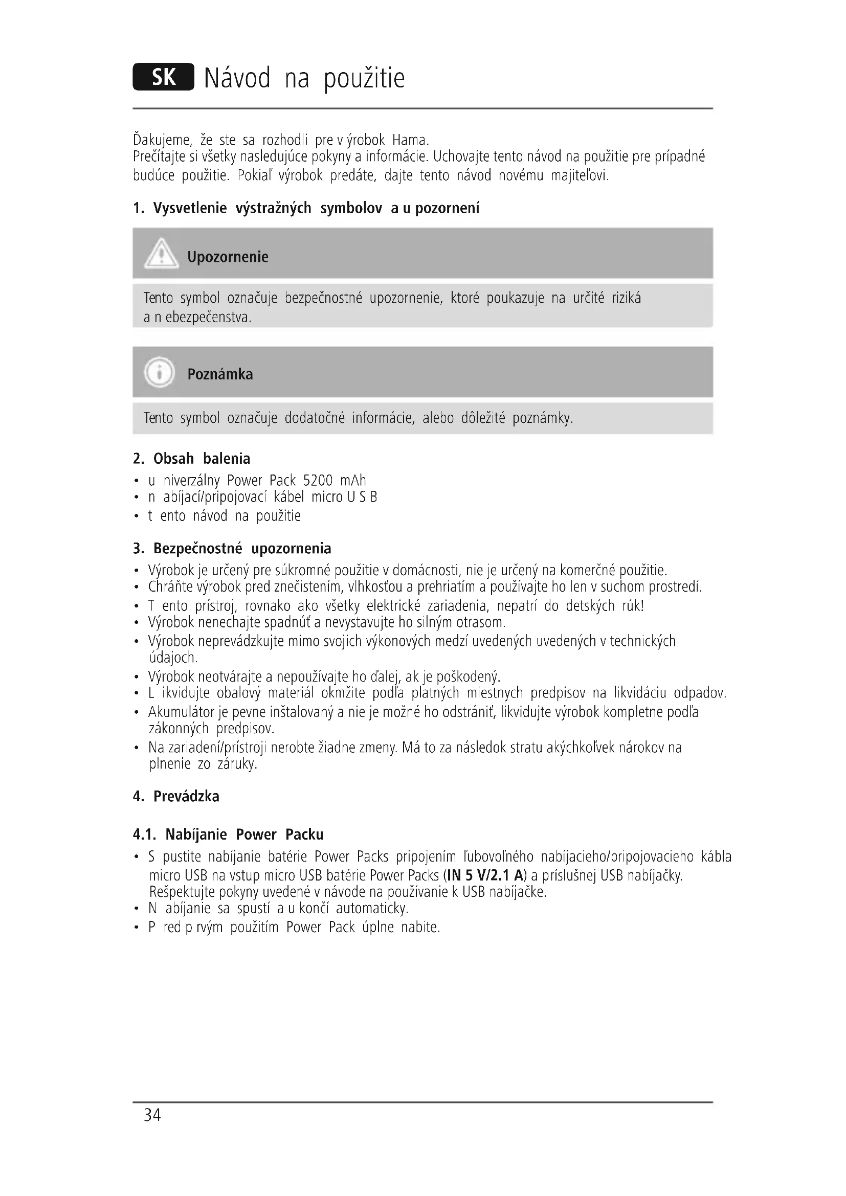 - Počas nabíjania Power Packu nepripájajte žiadne koncové zariadenia. Mohlo by tak dôjsť k poškodeniu Power Packu apripojených koncových zariadení.
