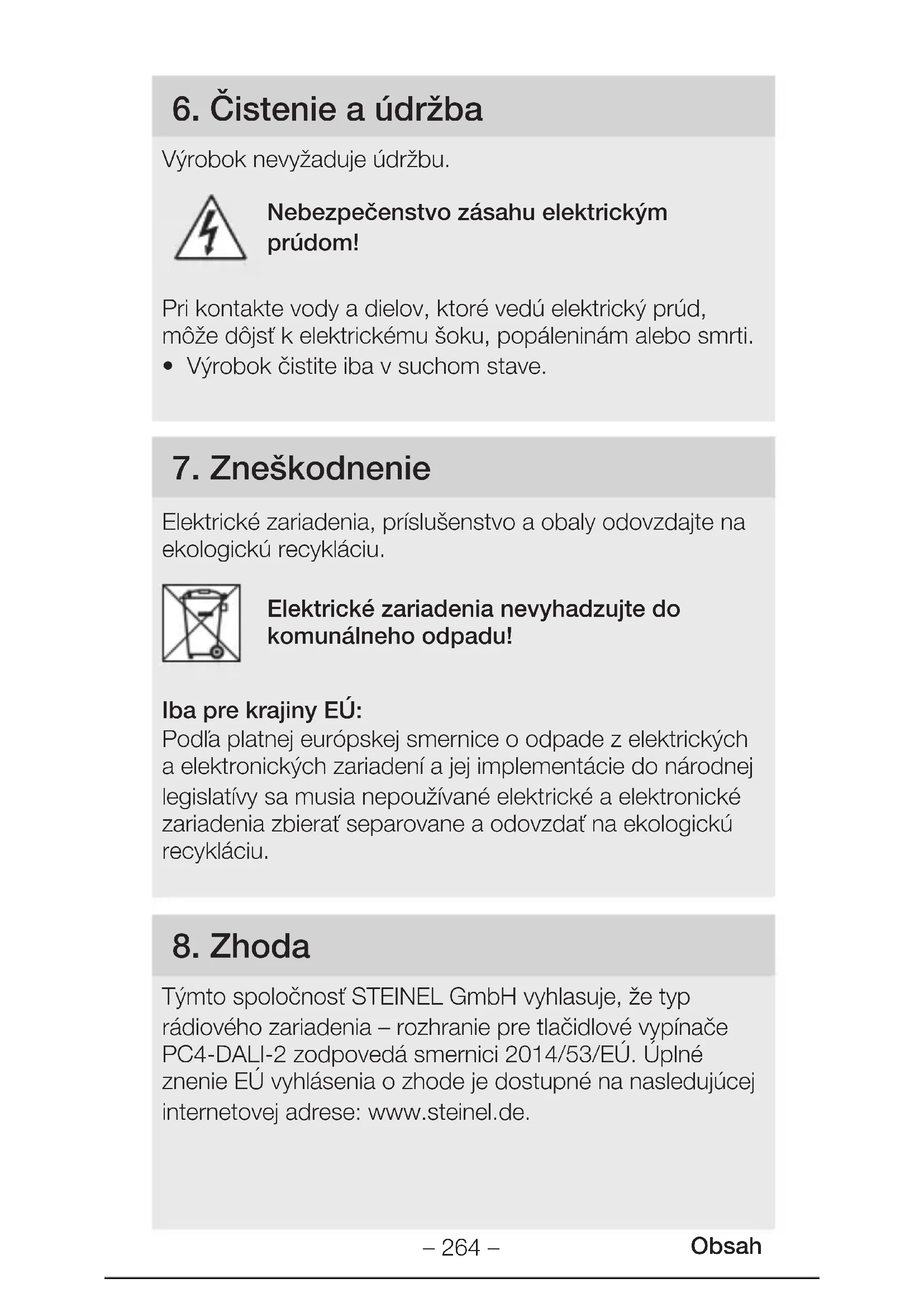 Tymto spolocnost STEINEL GmbH vyhlasuje, ze typ radiosvoho zariadenia - rozhranie pre tlacidlove vypinace PC4-DALI-2 zodpoveda smernici 2014/53/EU. Üplné znenie EU vyhlasenia o zhode je dostupné na nasledujucej internetovej adrese: www.steinel.de.