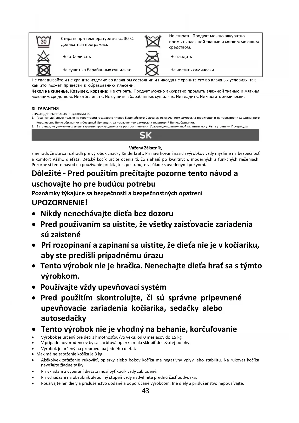 4. V niektorých krajinách je možné predĺžiť záruku na obmedzenú dobu až 120 mesiacov (10 rokov). Úplné podmienky a registračný formulár na predĺženie záruky sú k dispozícii na webovej stránke WWW.KINDERKRAFT.COM