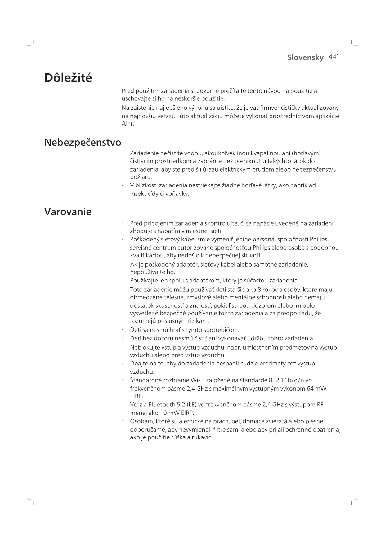 Ludom, ktori su alergicki na prach, pel, domace zvierata alebo plesne, odporucame, aby si sami nevymienali filtrre alebo aby sa chrani, napriklad maskou a rukavicami. Toto zariadenie nenahradasz spravnu ventilaciu, pravidelné vysavanie alebo pouzivanie odsavaca pár alebo ventilatora pri varení.