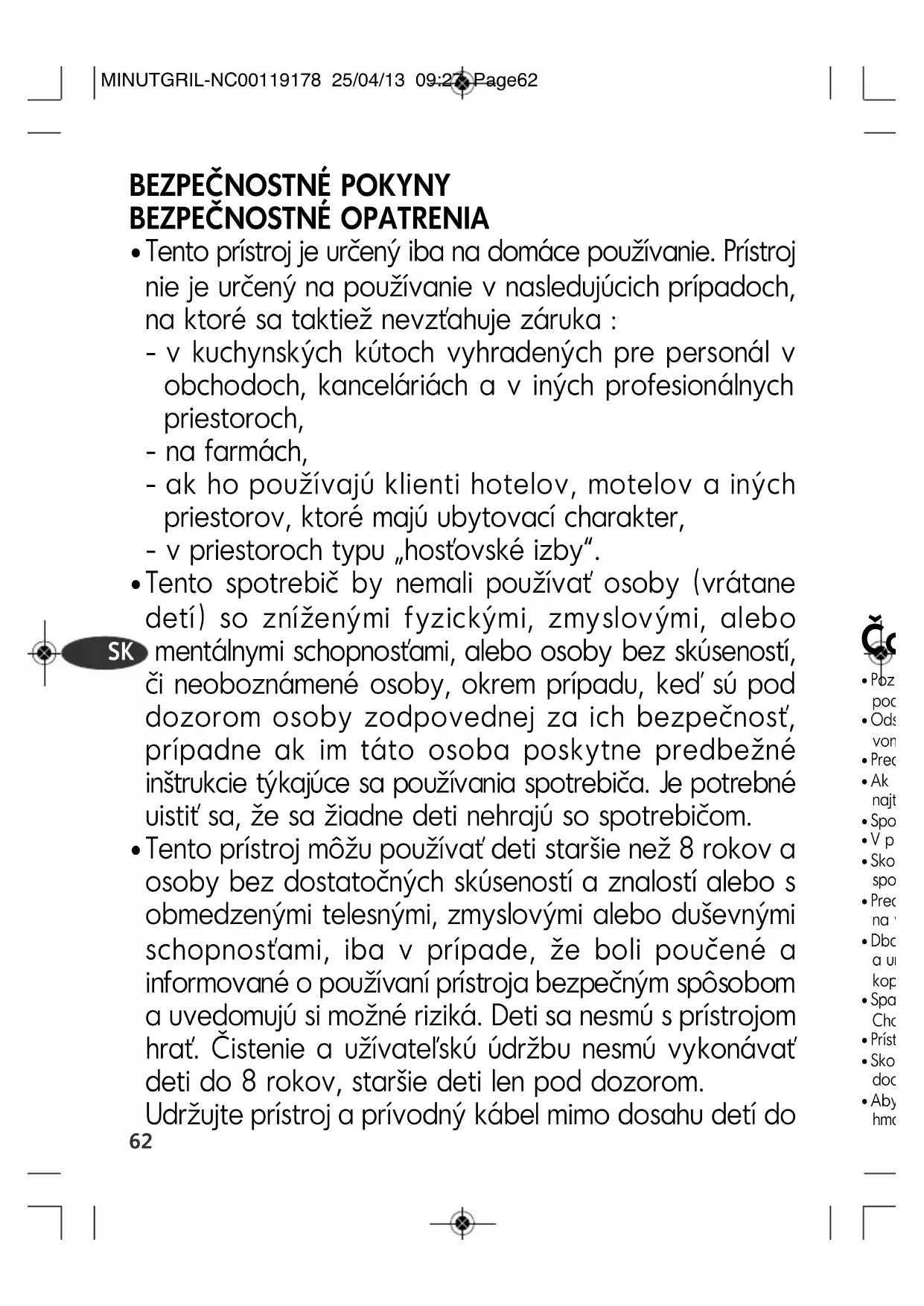 - Zákaz konzumovať tekuté, alebo pevné potraviny prichádzajúce do kontaktu so súčasťami oz- načenými logom . MINUTGRIL-NC00119178 25/04/13 09:27 Page6465