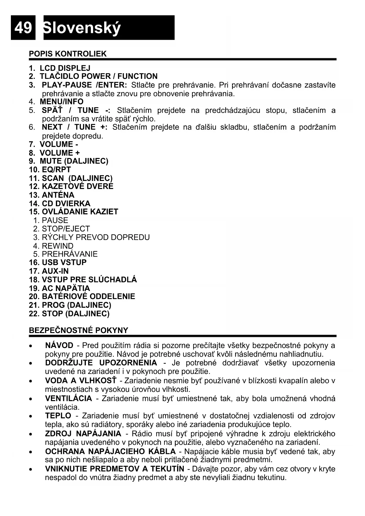 - NÁVOD - Pred použitím rádia si pozorne prečítajte všetky bezpečnostné pokyny a pokyny pre použitie. Návod je potrebné uschovať kvôli následnému nahliadnutiu.