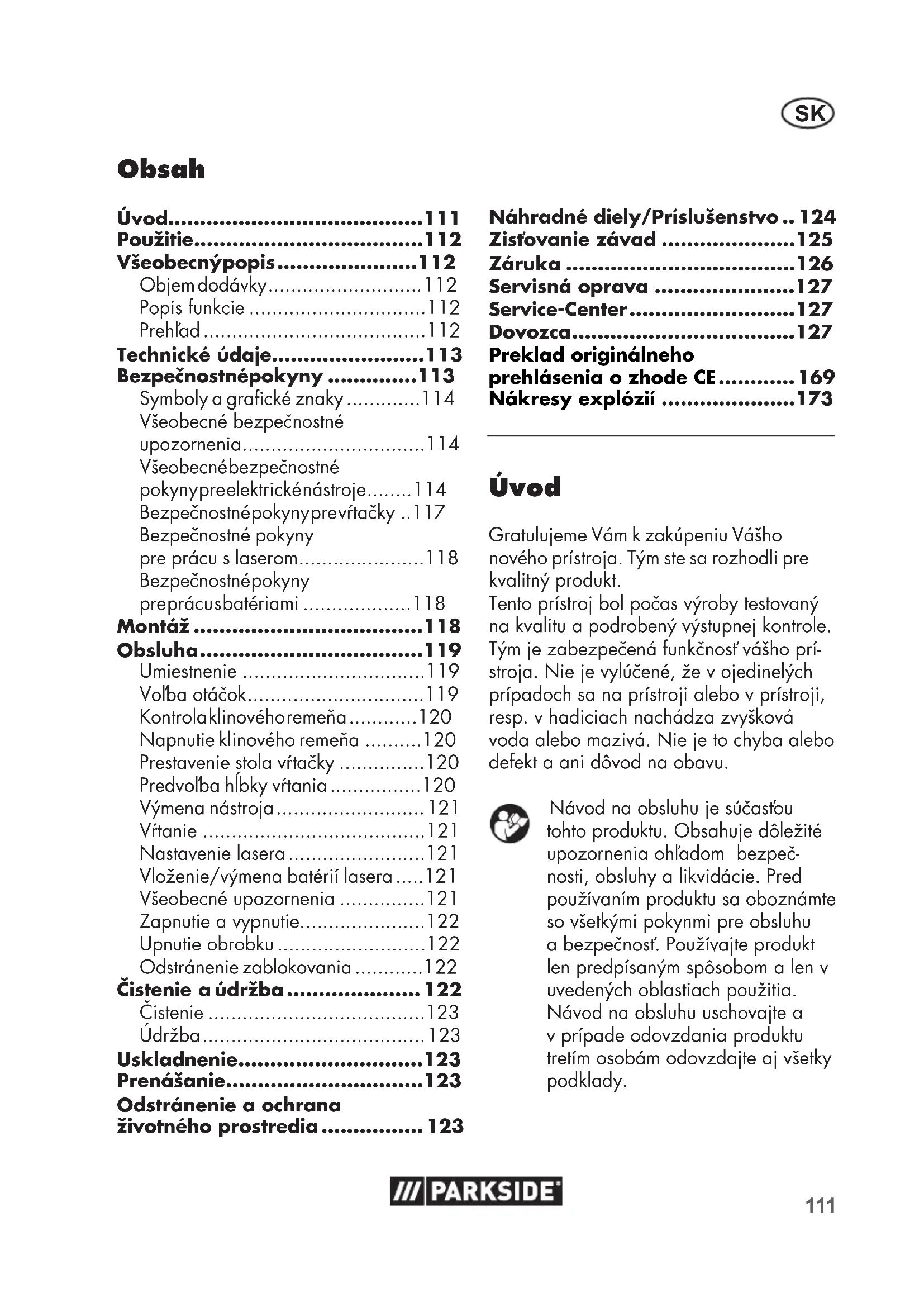 - Bezpečnostné pokyny p. 113