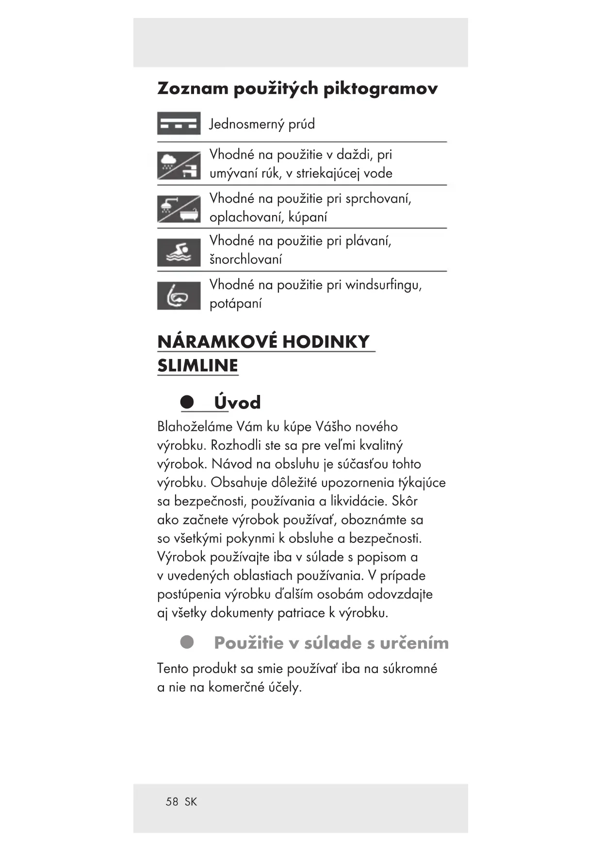 SLIMLINE Úvod Blahoželáme Vám ku kúpe Vášho nového výrobku. Rozhodli ste sa pre veľmi kvalitný výrobok. Návod na obsluhu je súčasťou tohto výrobku. Obsahuje dôležité upozornenia týkajúce sa bezpečnosti, používania a likvidácie. Skôr ako začnete výrobok používať, oboznámte sa so všetkými pokynmi k obsluhe a bezpečnosti. Výrobok používajte iba v súlade s popisom a v uvedených oblastiach používania. V prípade postúpenia výrobku ďalším osobám odovzdajte aj všetky dokumenty patriace k výrobku. Použitie v súlade s určením Tento produkt sa smie používať iba na súkromné a nie na komerčné účely.59 SK Popis súčiastok