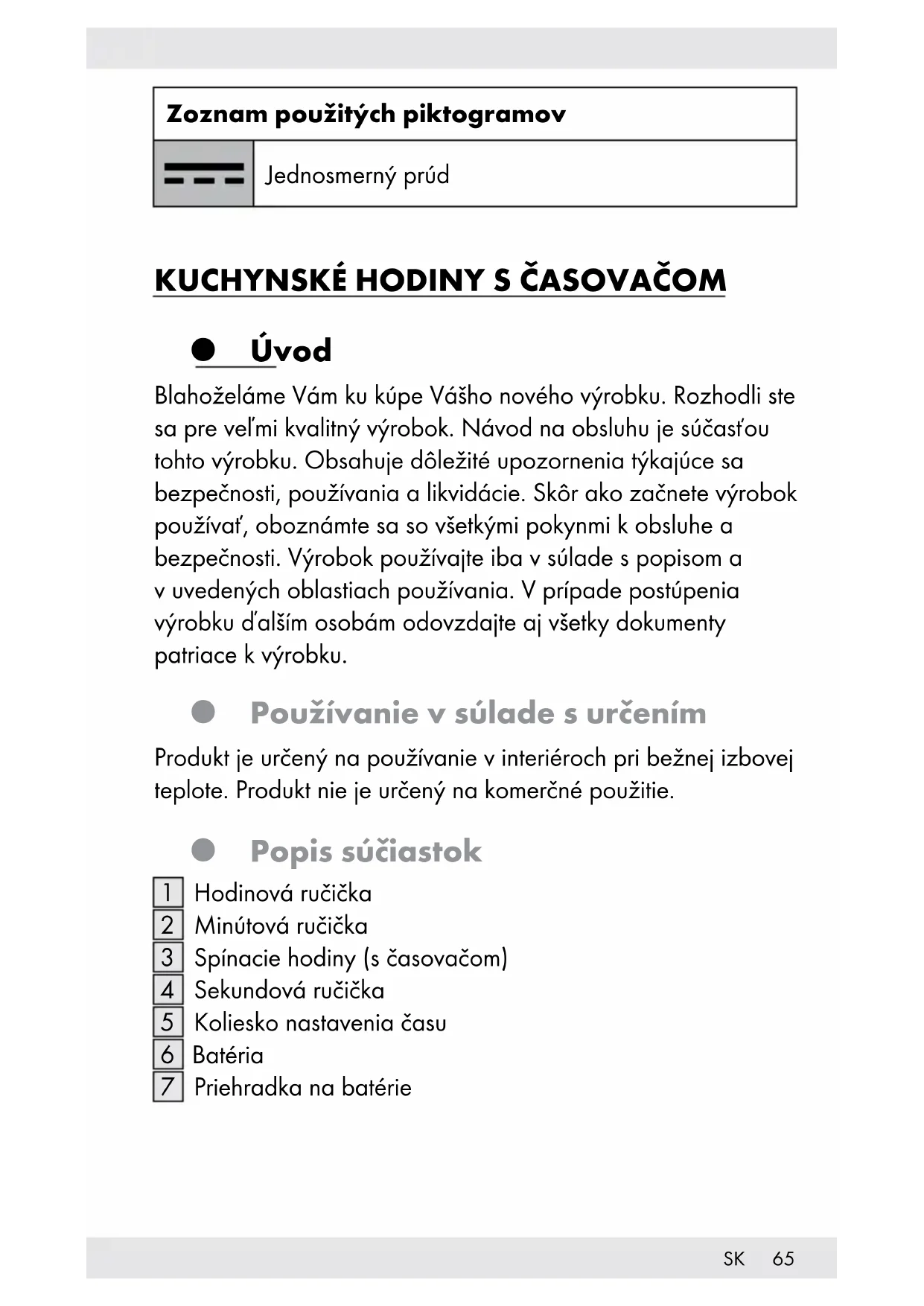Úvod Blahoželáme Vám ku kúpe Vášho nového výrobku. Rozhodli ste sa pre veľmi kvalitný výrobok. Návod na obsluhu je súčasťou tohto výrobku. Obsahuje dôležité upozornenia týkajúce sa bezpečnosti, používania a likvidácie. Skôr ako začnete výrobok používať, oboznámte sa so všetkými pokynmi k obsluhe a bezpečnosti. Výrobok používajte iba v súlade s popisom a v uvedených oblastiach používania. V prípade postúpenia výrobku ďalším osobám odovzdajte aj všetky dokumenty patriace k výrobku. Používanie v súlade s určením Produkt je určený na používanie v interiéroch pri bežnej izbovej teplote. Produkt nie je určený na komerčné použitie. Popis súčiastok