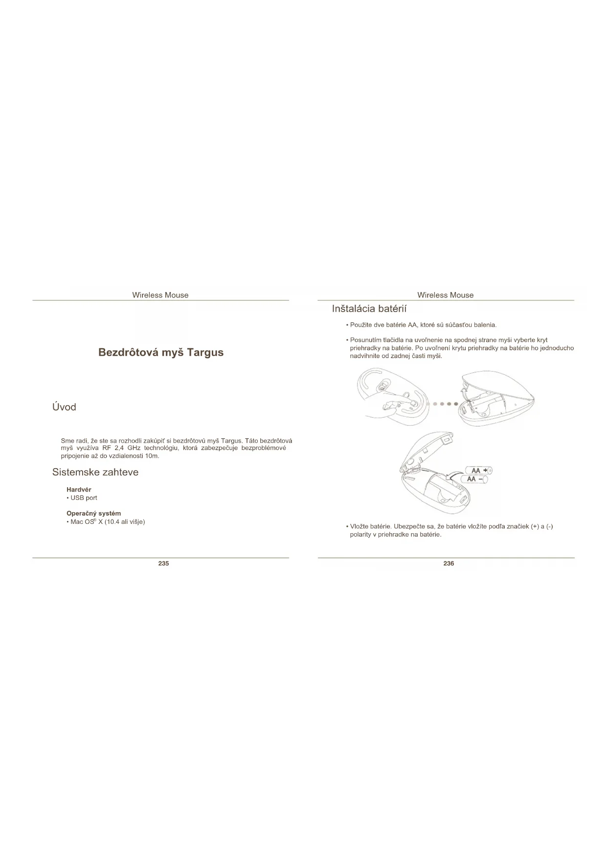 - Funkciu rýchleho posunu vypnete stlačením niektorého z tlačidiel. Inštalácia ovládača zariadenia Inštalácia softvéru umožňuje kongurovanie programovateľných tlačidiel. Najnovšiu verziu softvéru (Model #AMW43) môžete prevziať z ociálnej we- bovej stránky spoločnosti Targus: http://www.targus.com/uk/Downloads/AMW43EU.dmg Inštalačný softvér spustíte dvojitým kliknutím na ikonu Inštalátora.Wireless Mouse