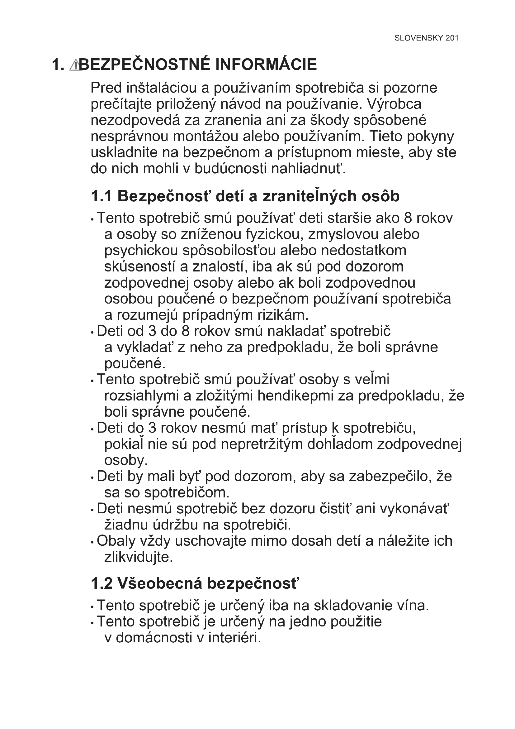 1.2 Všeobecná bezpečnosť
