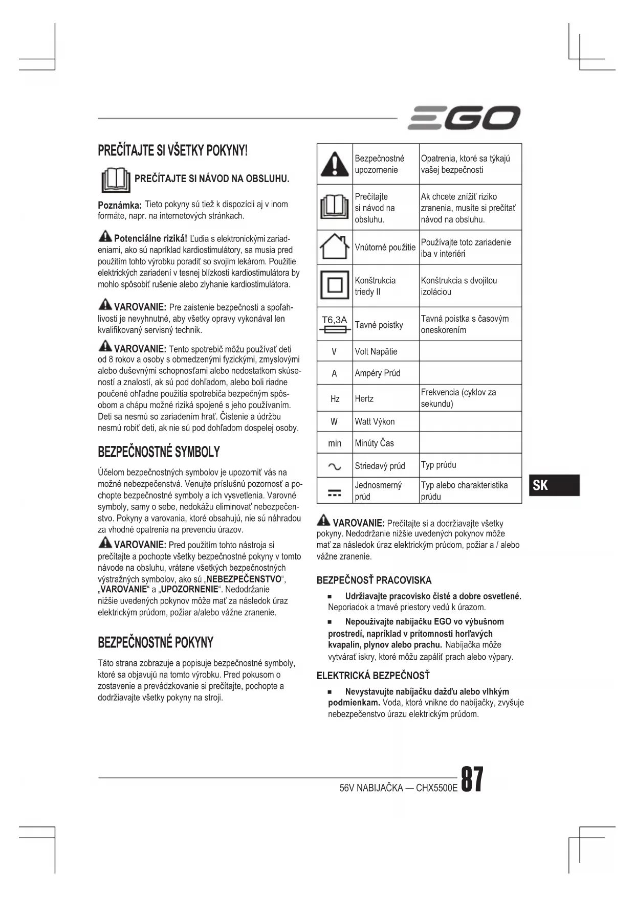 NÁVOD NA OBSLUHU CHX5500 EGO