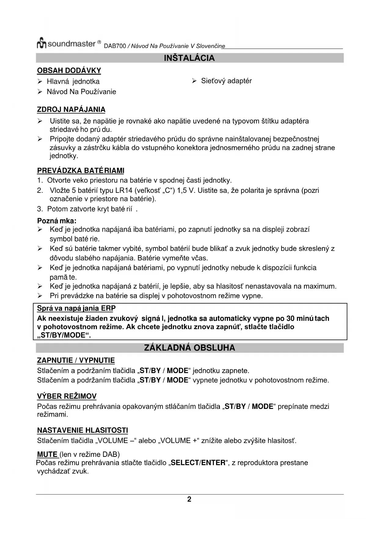 NÁVOD NA OBSLUHU DAB700 Soundmaster