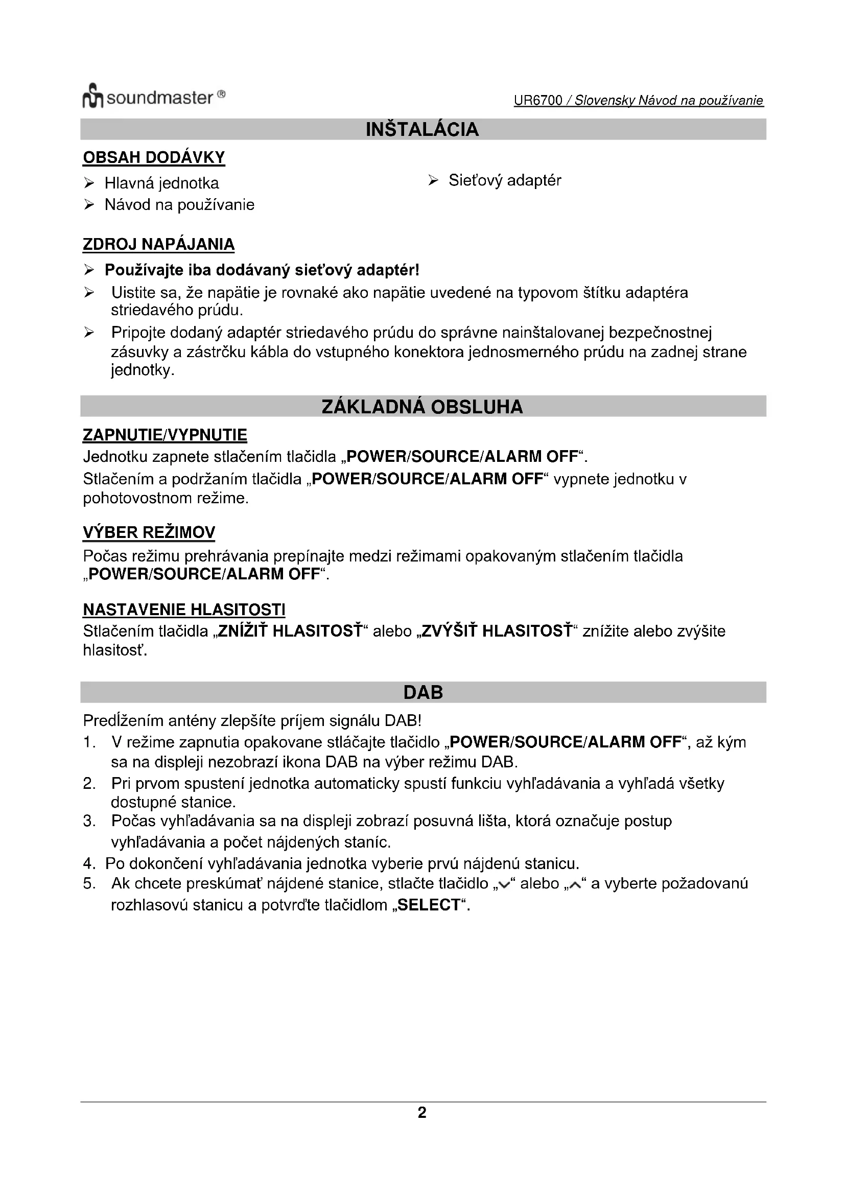 NÁVOD NA OBSLUHU UR6700 Soundmaster