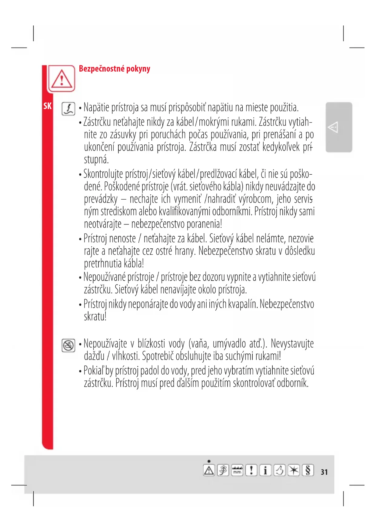 - Nepoužívané prístroje / prístroje bez dozoru vypnite a vytiahnite sieťovú zástrčku. Sieťový kábel nenavíjajte okolo prístroja.