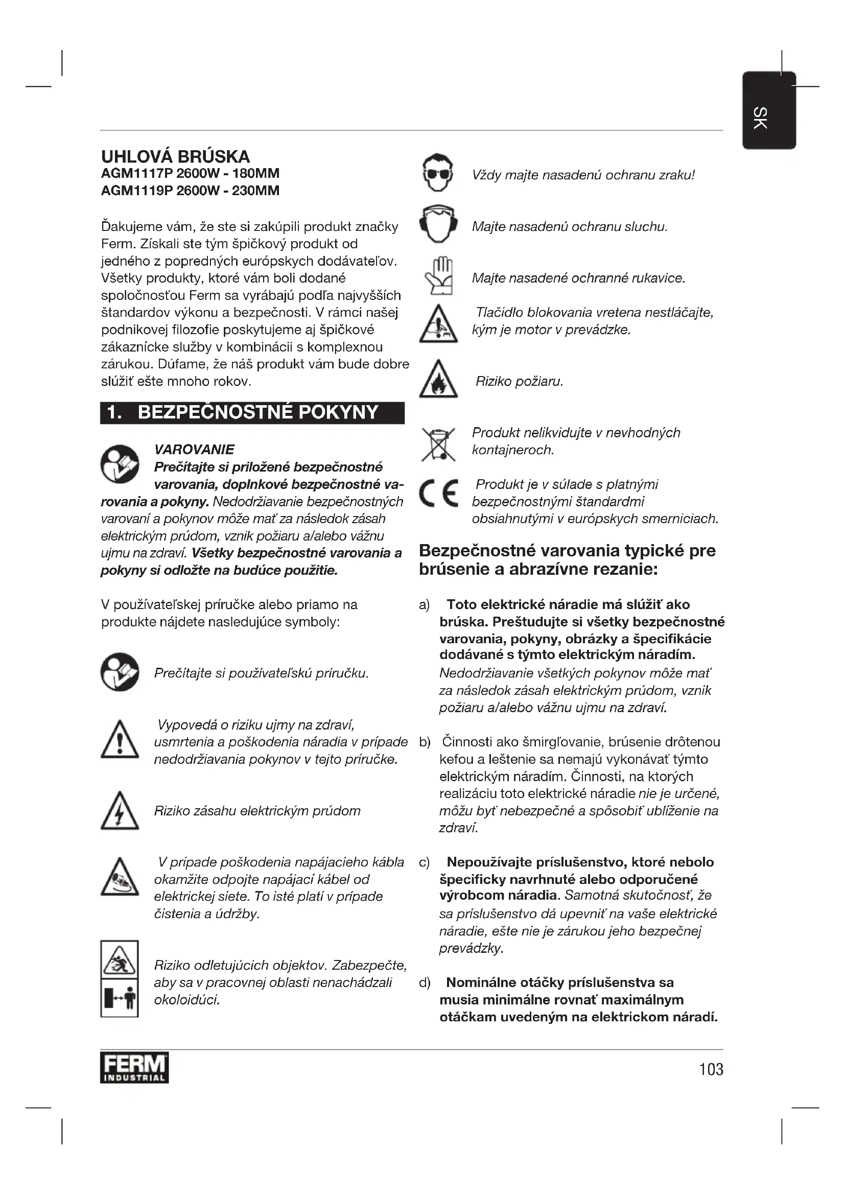 Dakujeme vam, ze ste si zakupili produkt značky Ferm. Ziskali ste tym špičkový produkt od jegneho z popredných europskych dodávatelov. Vsetky produkty, ktoré vam boli dodané spolocnostou Ferm sa vyrabaju podla najvyšich standardov vykonu a bezpečnosti. V ramci našej podnikovej filozofie poskytujeme aj špičkové zákaznicke sluzby v kombinácii komplexnou zárukou. Dufame, ze nás produkt vam bude dobre sluzit'estmnoho rokov.
