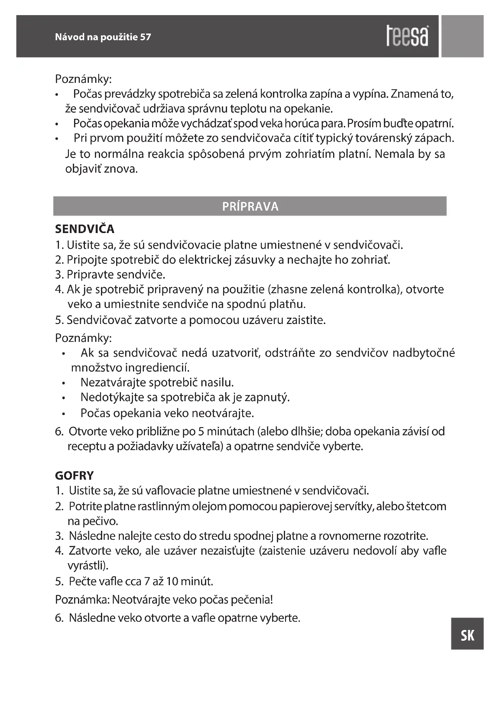 TSA3221 - Svorka na croque monsieur Teesa - Bezplatný návod na obsluhu