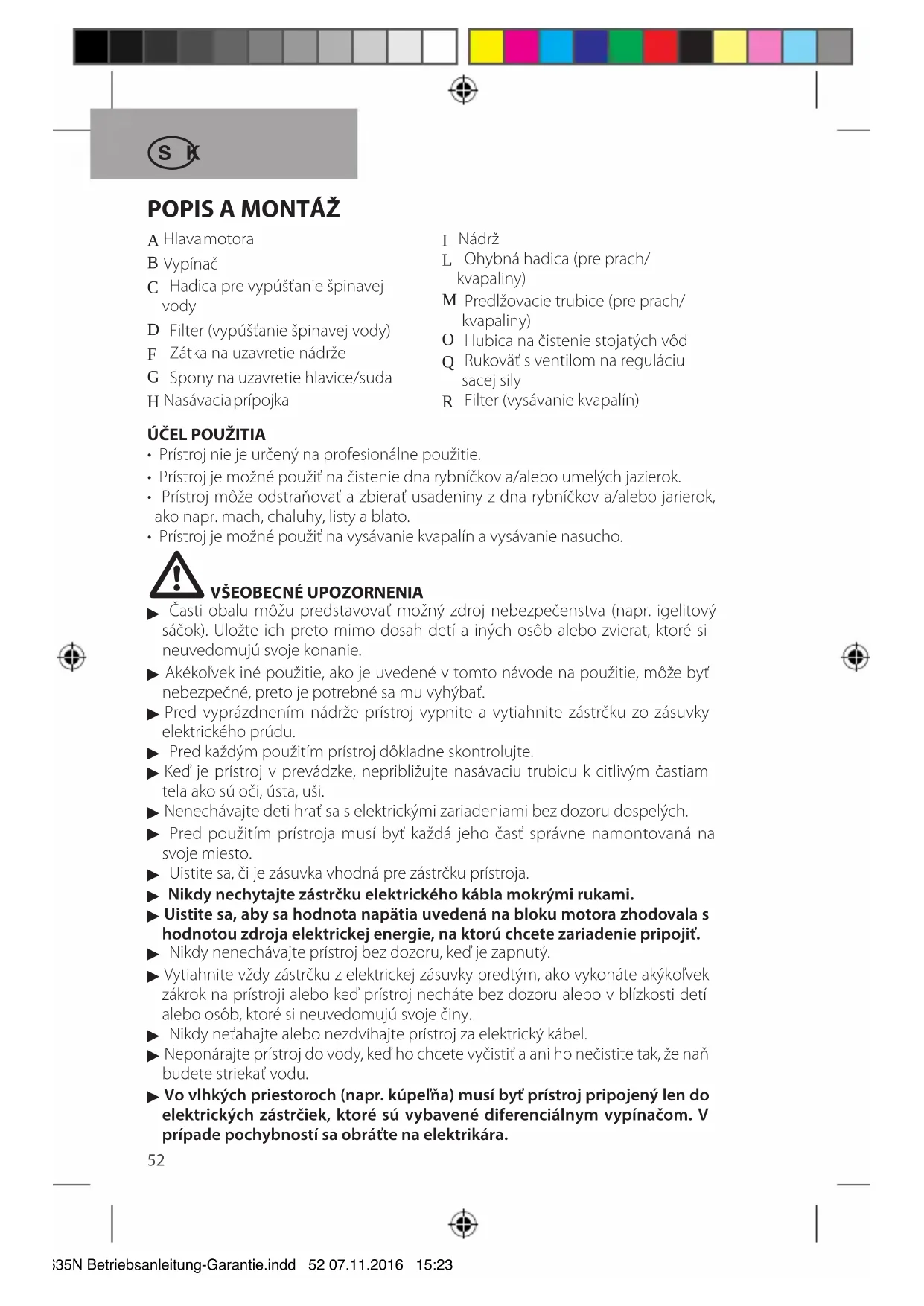 - Prístroi je besoiné použit na vysávanie kvapalín a vysávanie nasucho.