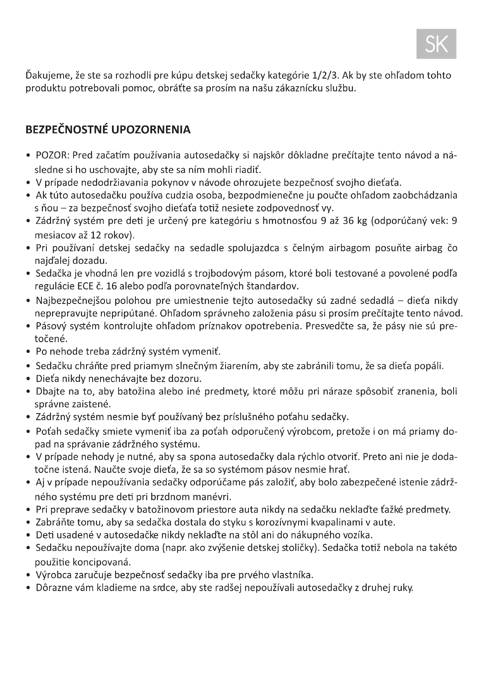 - POZOR: Pred začam používania autosedačky si najskôr dôkladne prečítajte tento návod a ná- sledne si ho uschovajte, aby ste sa ním mohli riadiť.