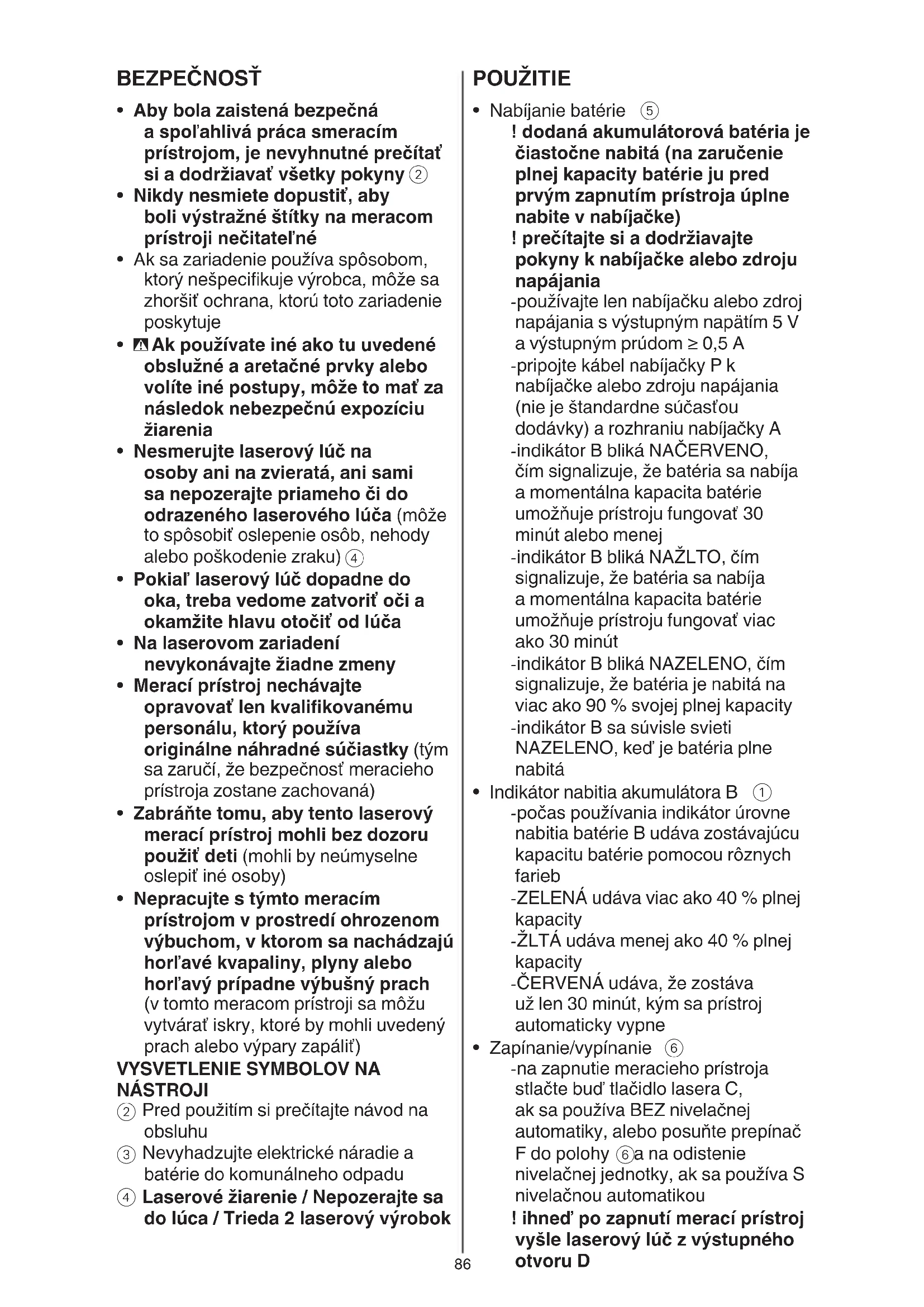 - Tieto pokyny dobre uschovajte a pokiaľ budete merací prístroj odovzdávať ďalej, priložte ich86 POUŽITIE