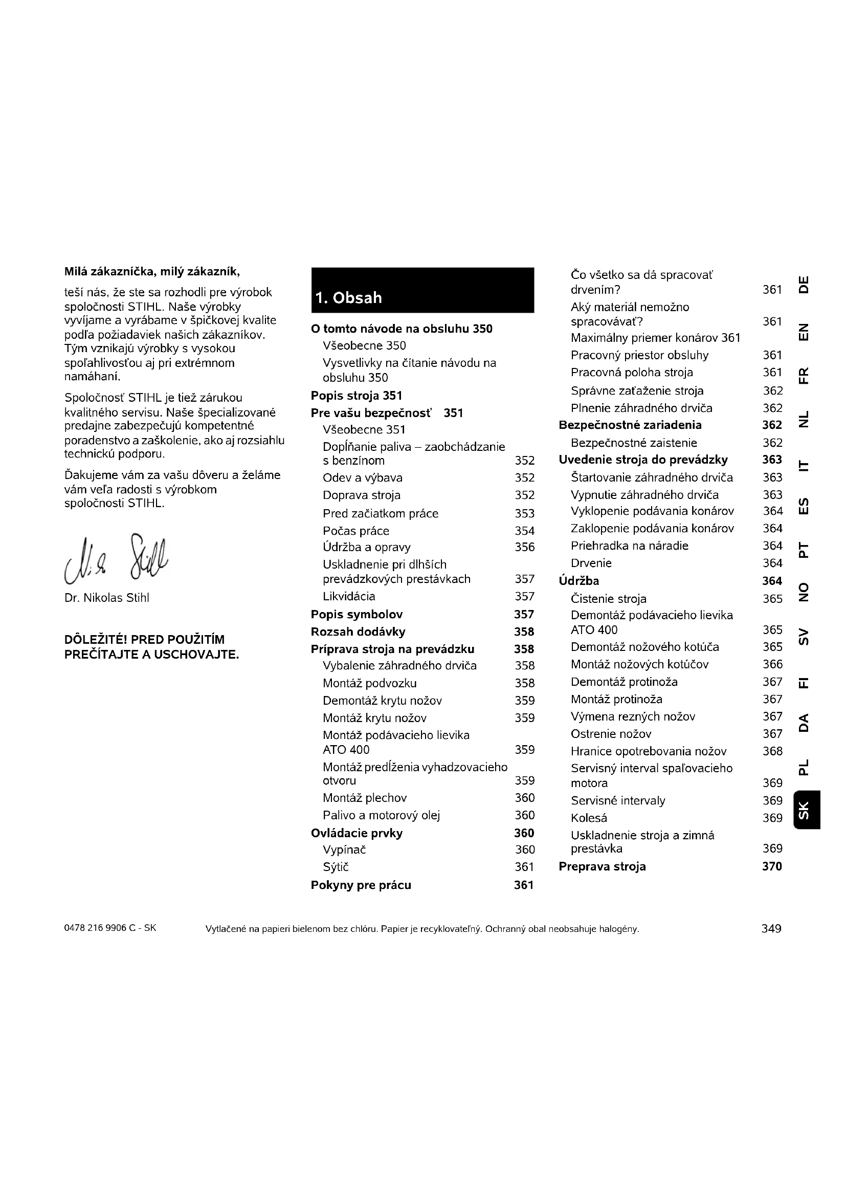 Spolocnost STIHL neustale pracuje na dalsom vyoji a rozsirovani ponuky svojich vyrobkov, preto si vyhradzuje pravo na zmeny obahu dodavok, ktoré sa mozu tkyat formy, technického vybavenia a prisluenstva.