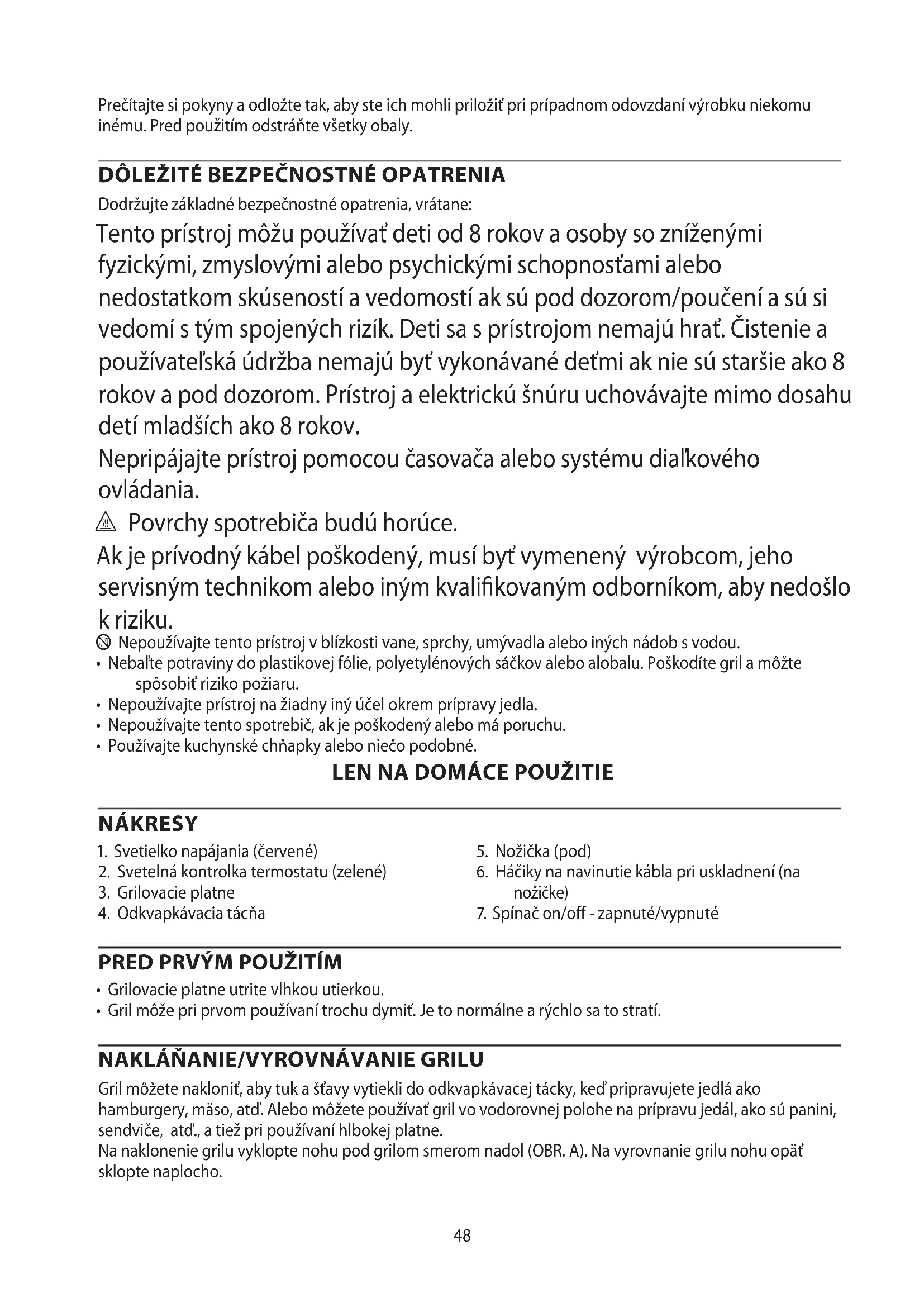 AE48 Prečítajte si pokyny a odložte tak, aby ste ich mohli priložiť pri prípadnom odovzdaní výrobku niekomu inému. Pred použitím odstráňte všetky obaly.