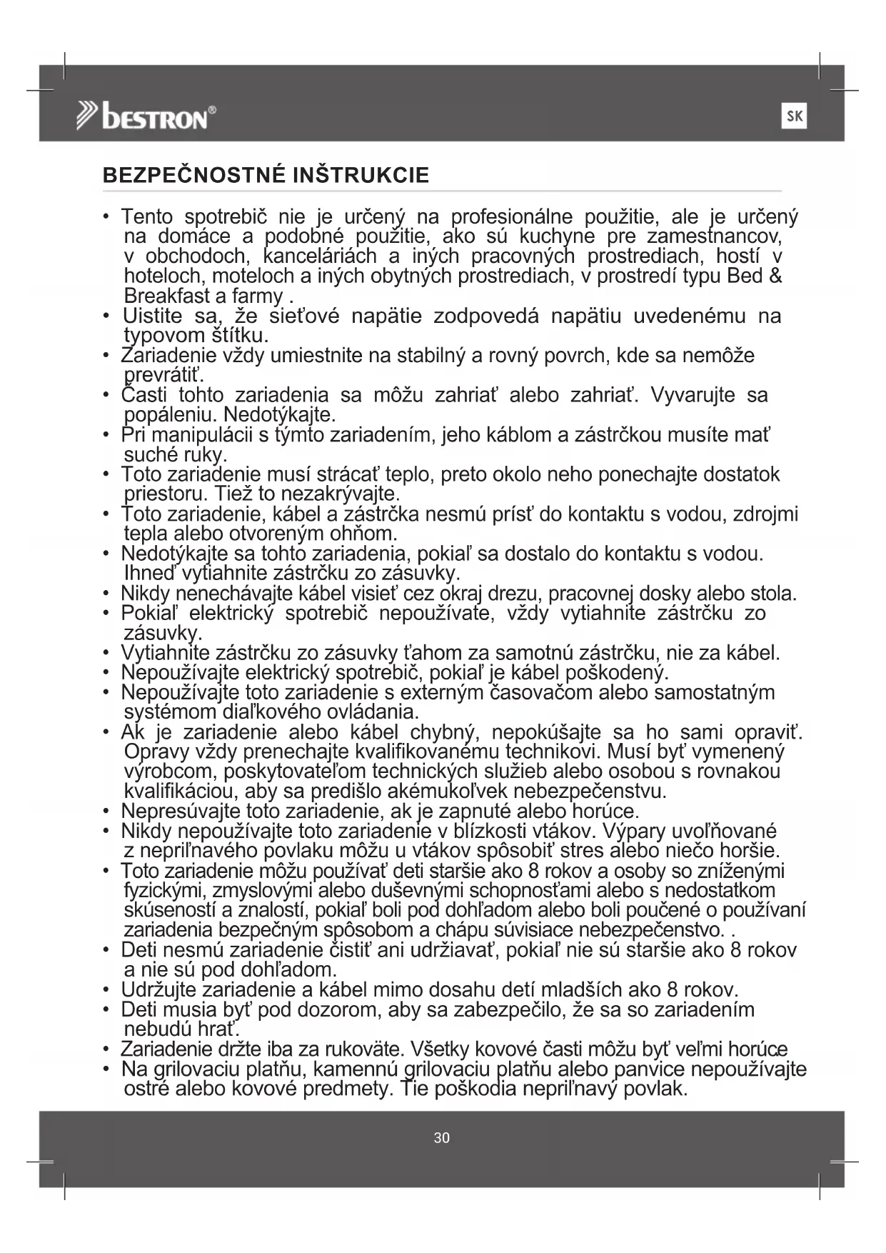 - Pri prvom použití spotrebiča môže produkovať mierny dym a špecický zápach. To je normálne a zmizne to samo. Zabezpečte dostatočné vetranie. Predhrievanie