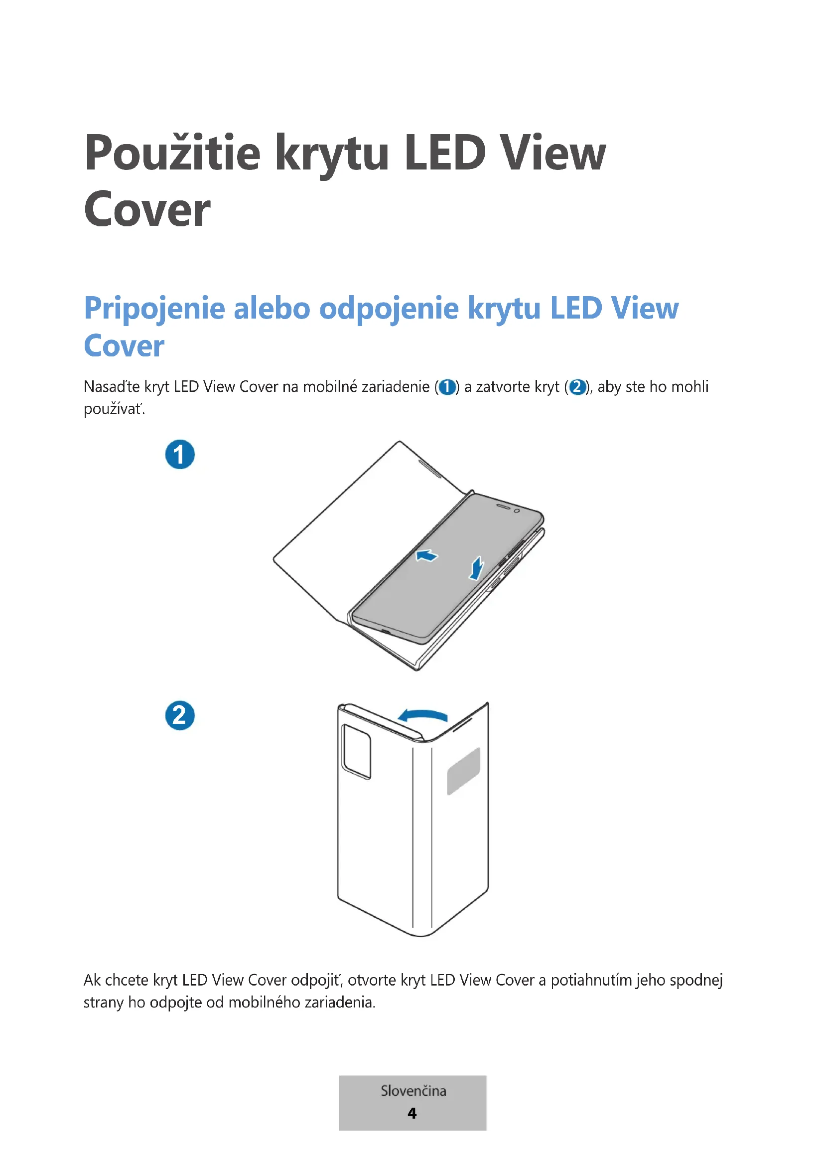 Ak chcete kryt LED View Cover odpojiť, otvorte kryt LED View Cover a potiahnutím jeho spodnej strany ho odpojte od mobilného zariadenia. Slovenčina 4Použitie krytu LED View Cover