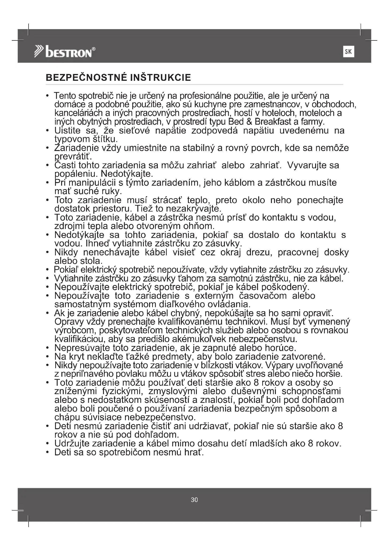 - Pri prvom použití spotrebiča môže produkovať mierny dym a špecický zápach. To je normálne a zmizne to samo. Zabezpečte dostatočné vetranie.