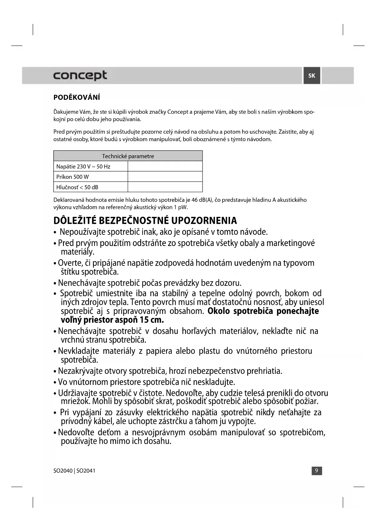 Dakujeme Vám, ze ste si kúpili vyrobok značky Concept a prajeme Vám, aby ste bolí s našim vyrobkom spokojni po celú dobu jeho používania.