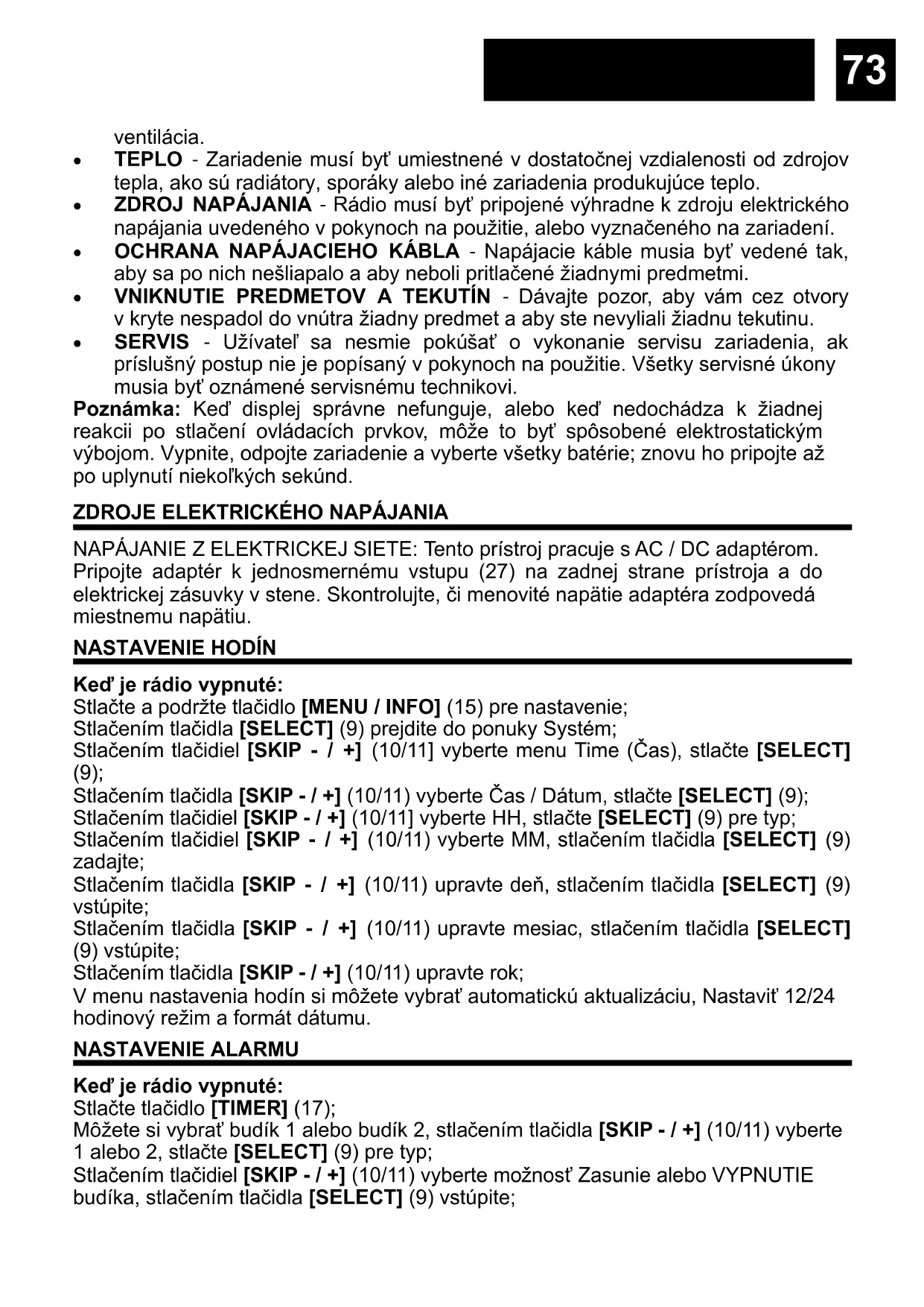 - NÁVOD - Pred použitím rádia si pozorne prečítajte všetky bezpečnostné pokyny a pokyny pre použitie. Návod je potrebné uschovať kvôli následnému nahliadnutiu.