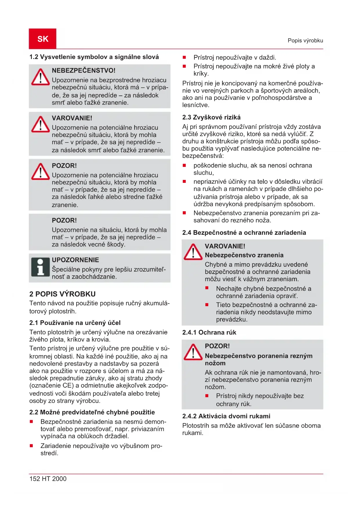 - Nie je súčasťou dodávky, môžete ho však ob- jednať zvlášť pod obj. č. 113698.SK 154 HT 2000 Bezpečnostné pokyny