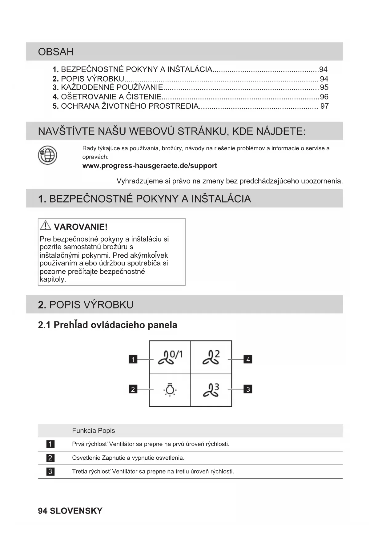 PDP9040E - Kuchynský digestor PROGRESS - Bezplatný návod na obsluhu