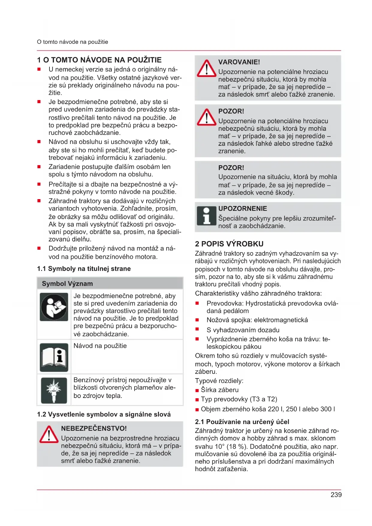 Preklad originálneho návodu na použitie PREKLAD ORIGINÁLNEHO NÁVODU NA POUŽITIE Obsah 1 O tomto návode na použitie..................... 239