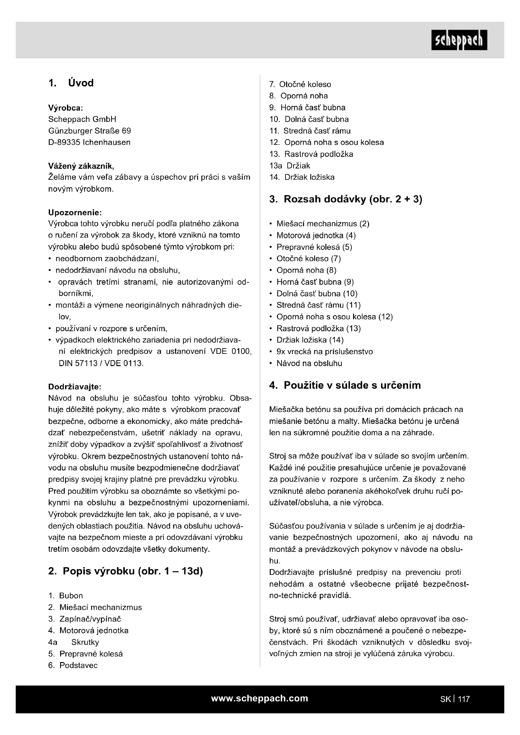 MIX140 - Miešačka cementu SCHEPPACH - Bezplatný návod na obsluhu