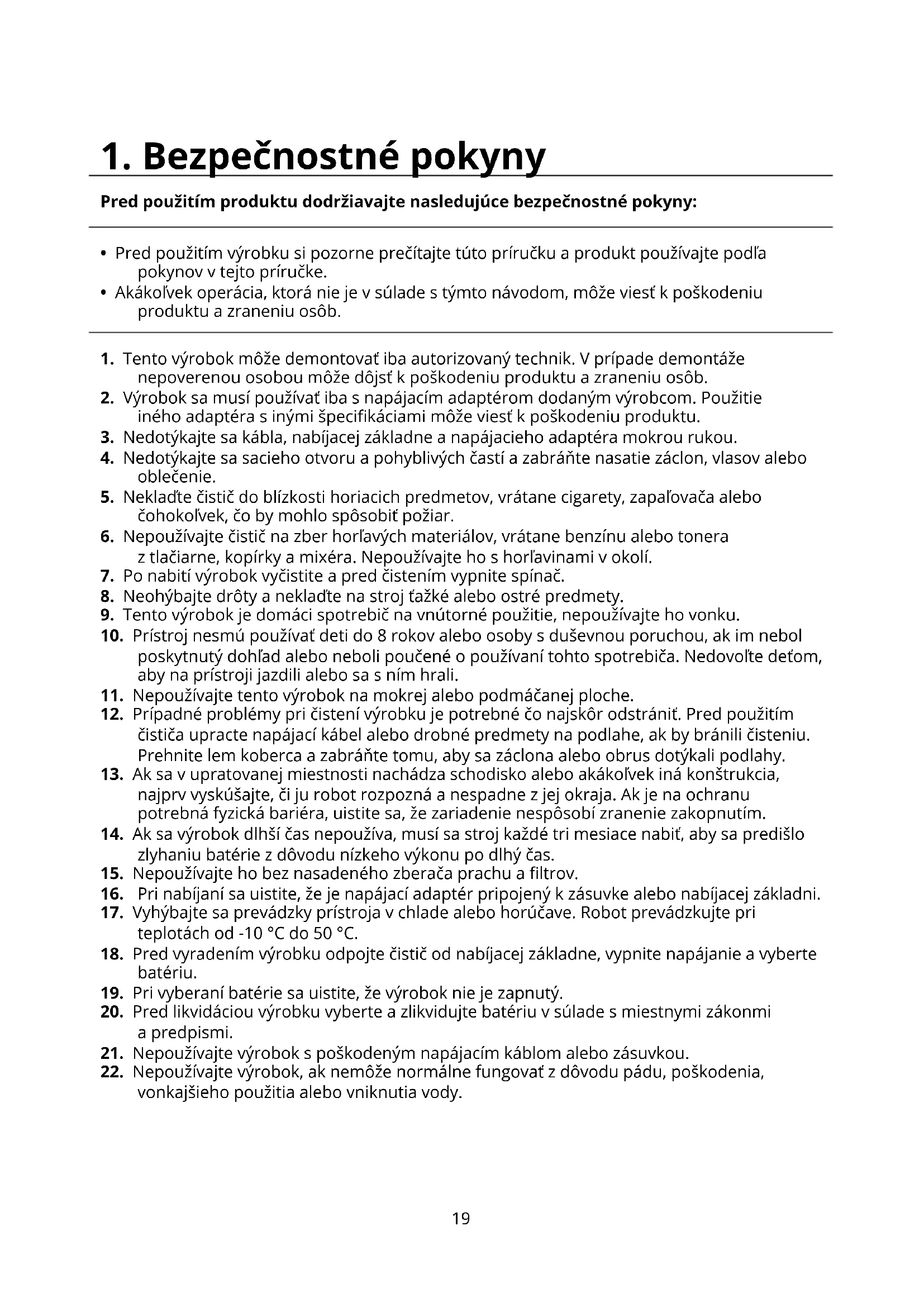 SK19 1.Bezpečnostnépokyny Predpoužitímproduktudodržiavajtenasledujúcebezpečnostnépokyny: