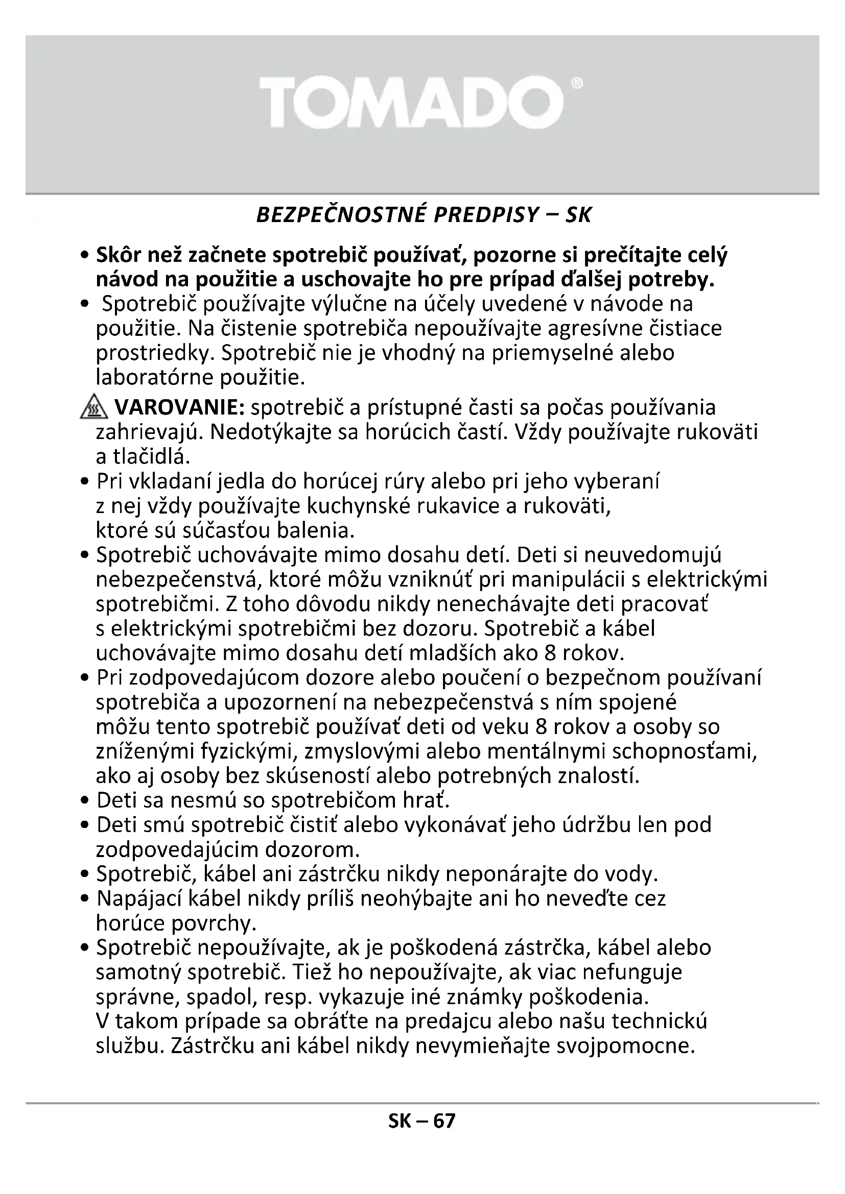 Príslušenstvoalebonáhradnédielyobjednávajtecezwww.tomado.com/support.