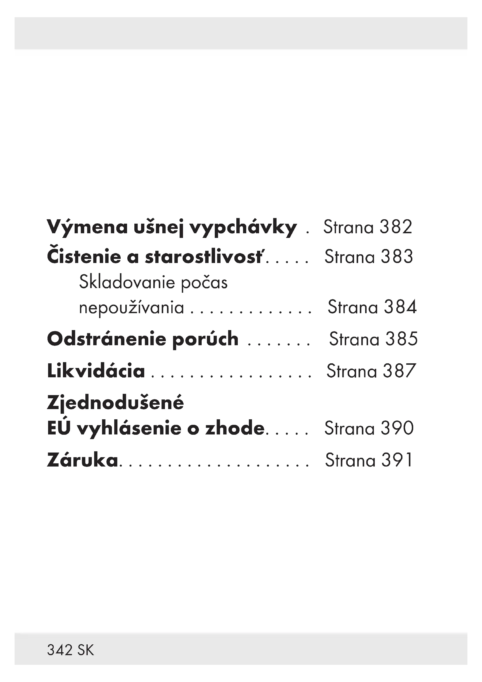 PRE DOJČATÁ A DETI! m NEBEZPEČENSTVO! Nebezpečenstvo zadusenia! Deti nikdy nenechávajte bez dozoru s produktom, príslušenstvom alebo obalovým materiálom. Obalový materiál predstavuje nebezpečenstvo udusenia. Deti často podceňujú nebezpečenstvo spojené s obalovými materiálmi. Obalové materiály nie sú hračky.358 SK Tento produkt môžu používať deti od 8rokov a osoby so zníženými fyzickými, zmyslovými alebo duševnými schopnosťami alebo nedostatkom skúseností a/alebo vedomostí, ak sú pod dozorom alebo boli poučené ohľadom bezpečného používania výrobku a z toho vyplývajúcich nebezpečenstiev. Deti nenechávajte hrať sa s produktom. Čistenie a údržbu nesmú vykonávať deti bez dozoru. Produkt nie je určený na hranie.359SK m NEBEZPEČENSTVO PRI NEDOSTATOČNOM VNÍMANÍ! Slúchadlá nepoužívajte pri šoférovaní, bicyklovaní, pri obsluhe strojov alebo v iných situáciách, v ktorých môže nedostatočné vnímanie okolitých zvukov ohroziť vás alebo iné osoby. Rešpektujte aj zákony a ustanovenia krajiny, v ktorej slúchadlá používate.360 SK Pozor, vysoký akustický tlak! Pri používaní slúchadiel dávajte pozor. Používanie slúchadiel dlhší čas a s vysokou hlasitosťou môže spôsobiť poškodenie sluchu. Vždy najskôr vyberte nižšiu hlasitosť a nastavte ju na príjemnú hladinu. Slúchadlá používajte vždy tak, aby neovplyvňovali vnímanie okolitých zvukov. m OPATRNE! NEBEZPEČENSTVO
