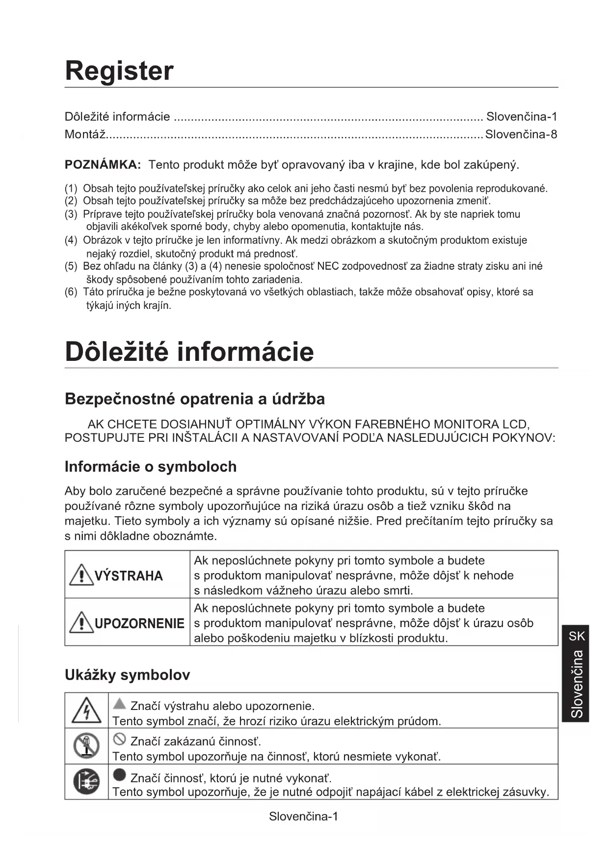 (3) Priprave tejto použivatel'skej prirucky bola venovaná značná pozornost'. Ak by ste napriek tomu objavili akékol'vek sporny body, chyby alebo opomenutia, kontaktujte nás.