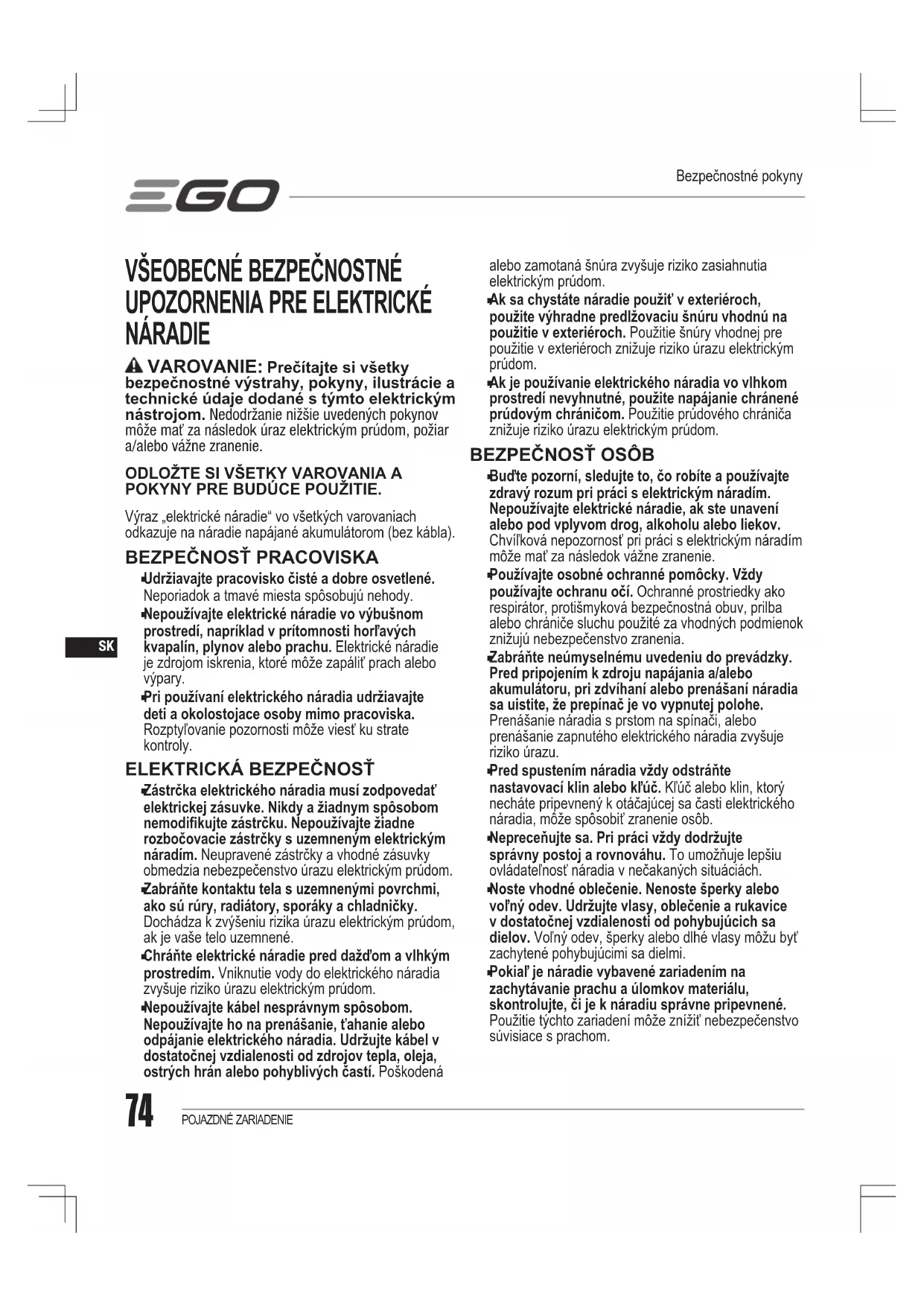 Ak sa vyskytnú situácie, ktoré nie sú zahrnuté v tomto návode, dávajte pozor a použite zdravý úsudok. Pre ďalšie rady kontaktujte zákaznícky servis EGO.